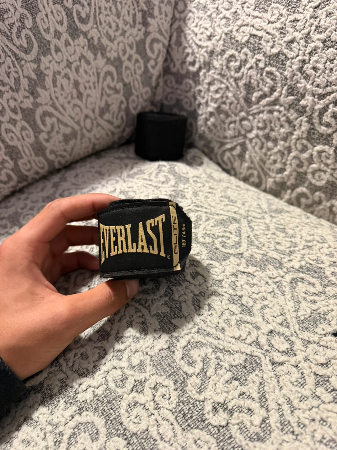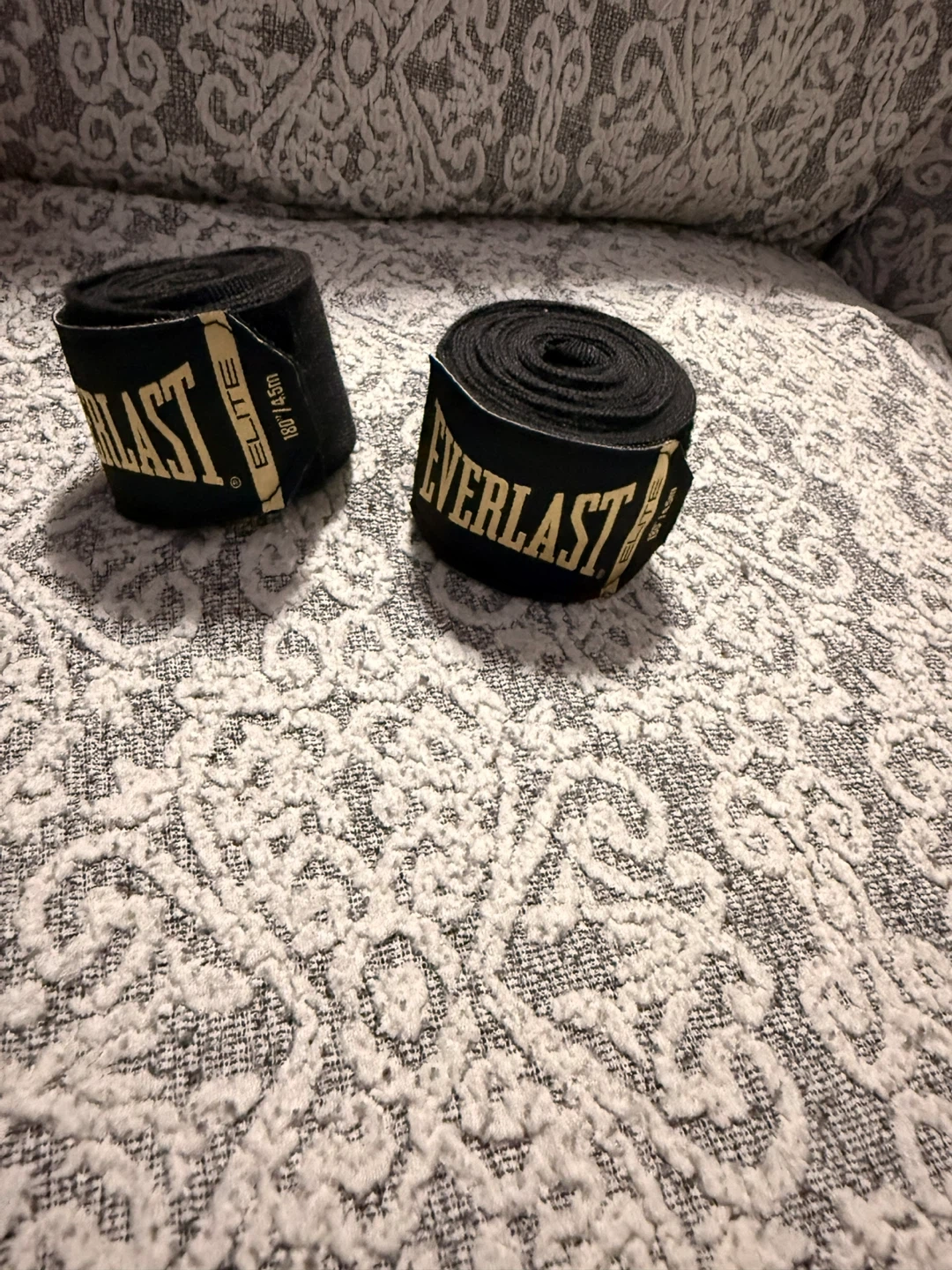 Selling a pair of Everlast Elite hand wraps. They are black and 180 inches (4.5m) long. Great for boxing or other combat sports! Used only one time !!