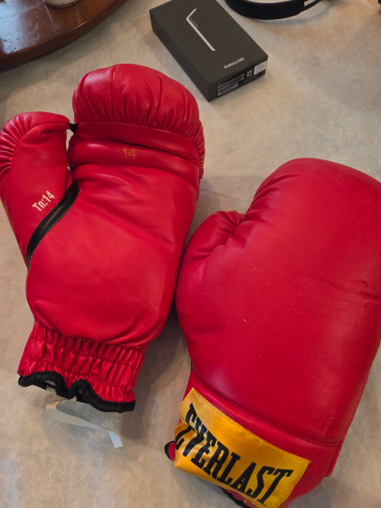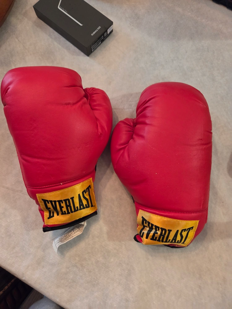 Selling a pair of Everlast Novice Everhide boxing gloves! They're a vibrant red and weigh 14oz. Perfect for someone starting out in boxing or looking for some training gloves. They come in their original packaging!