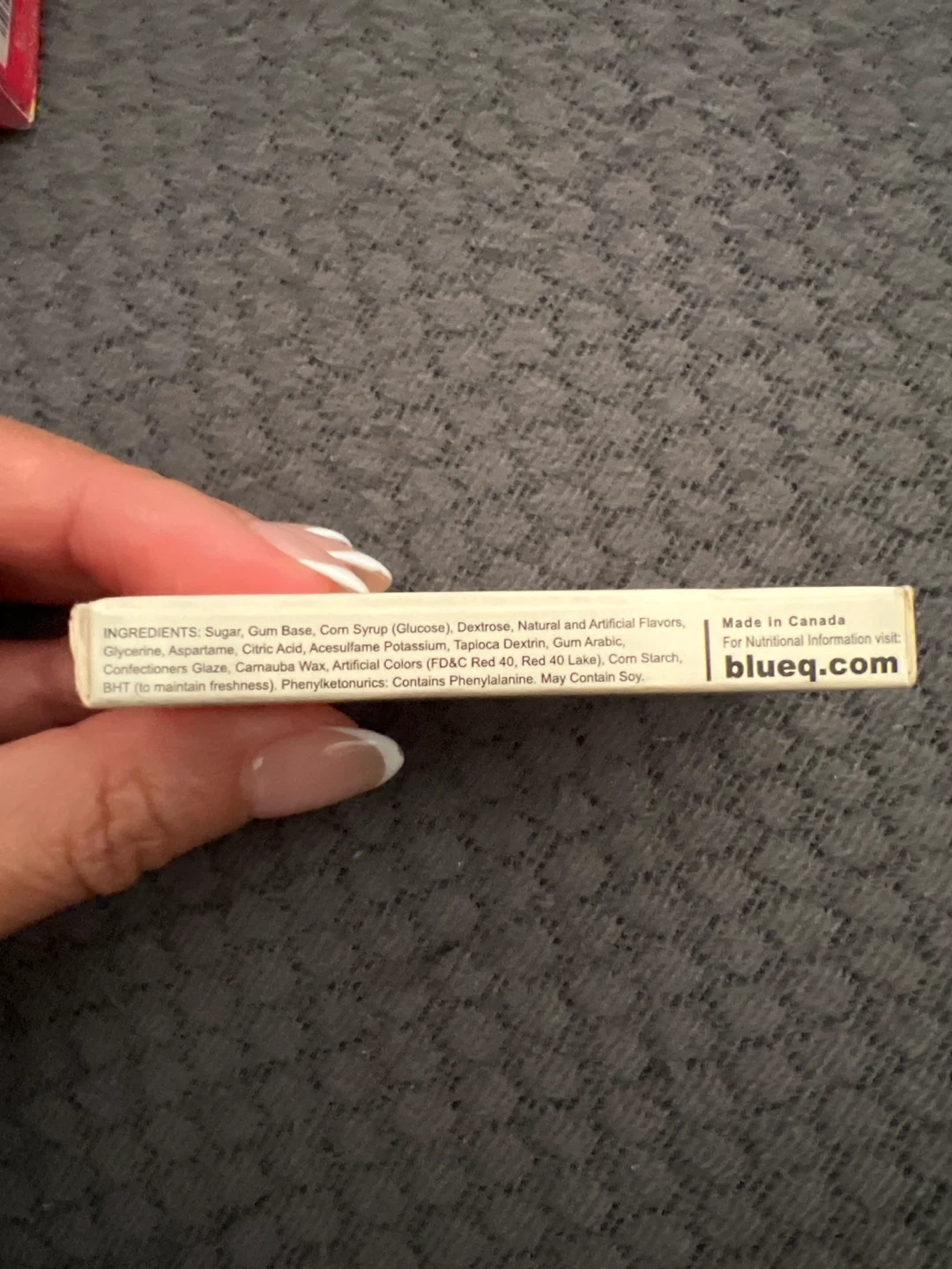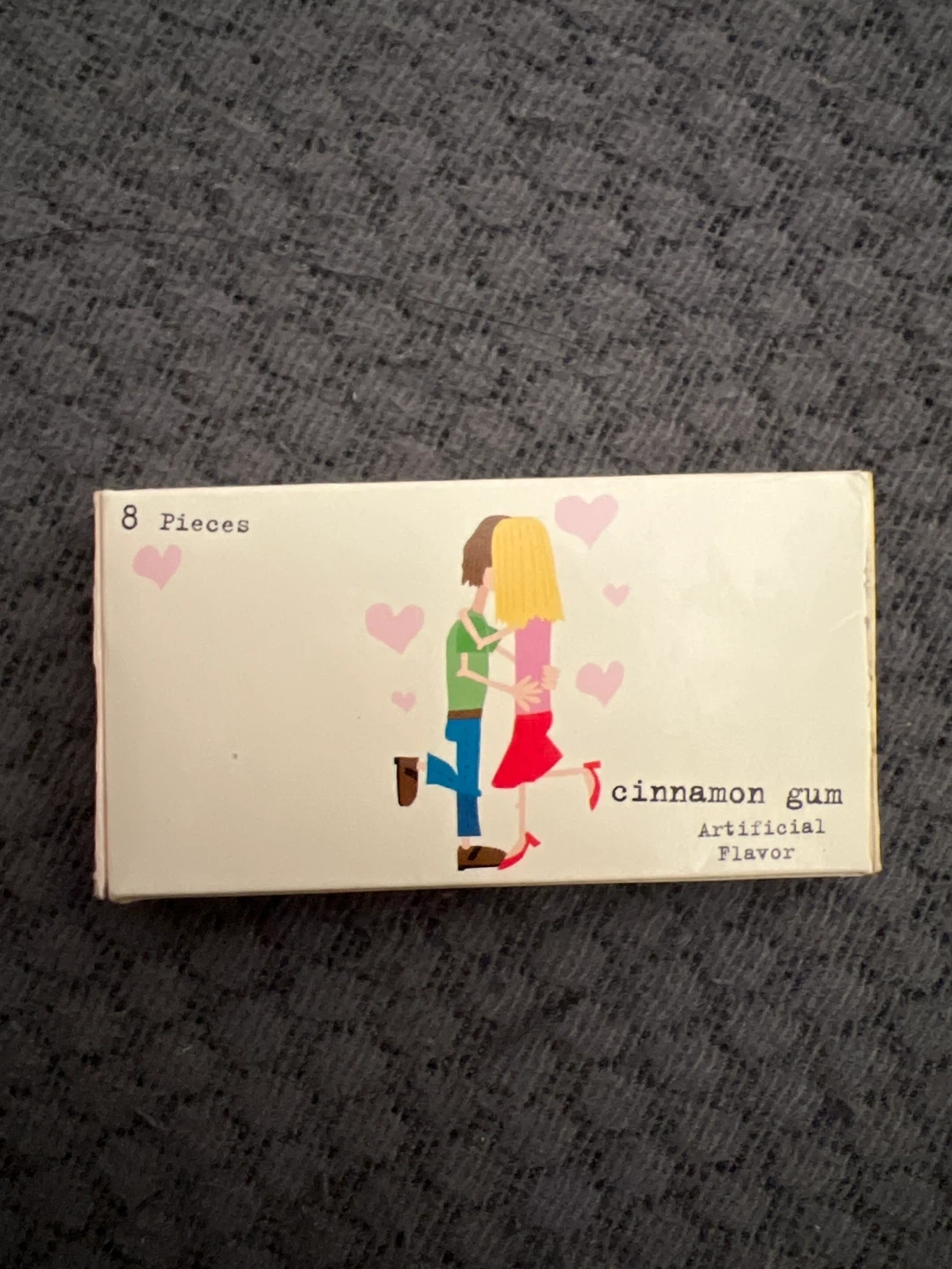 Selling a pack of cinnamon gum. The packaging is adorable with a cute design. There are 8 pieces inside. Made in Canada!