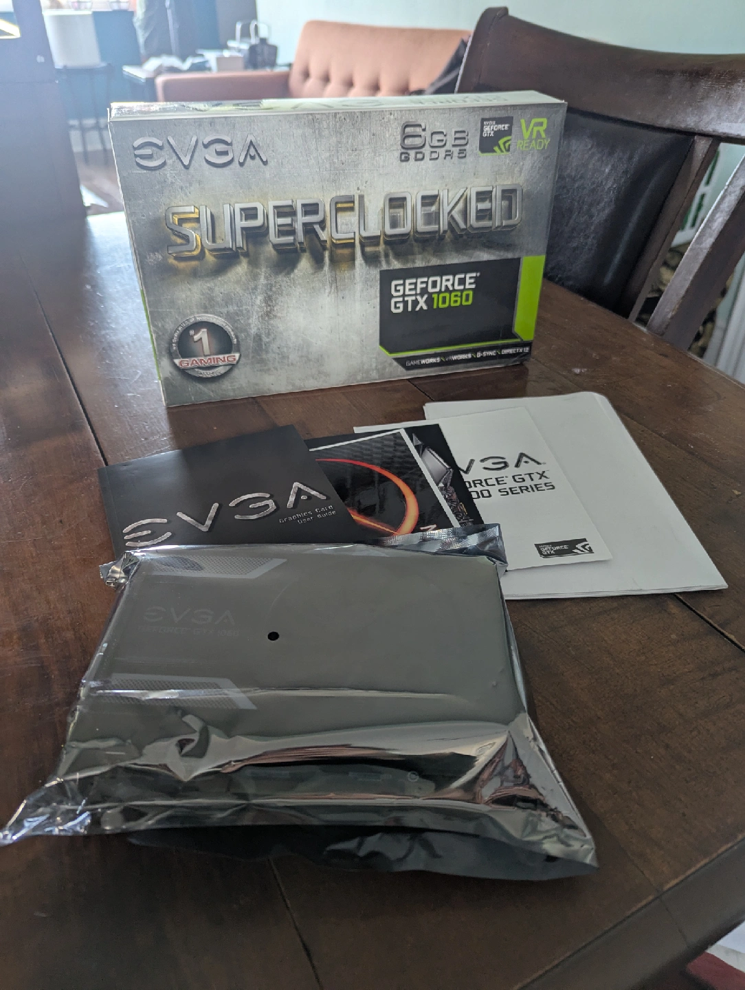 Selling an EVGA GeForce GTX 1060 6GB Superclocked graphics card Comes with the original box and all the included components and accessories. Well loved and regularly cleaned. X2 HDMI and X2 Display ports.