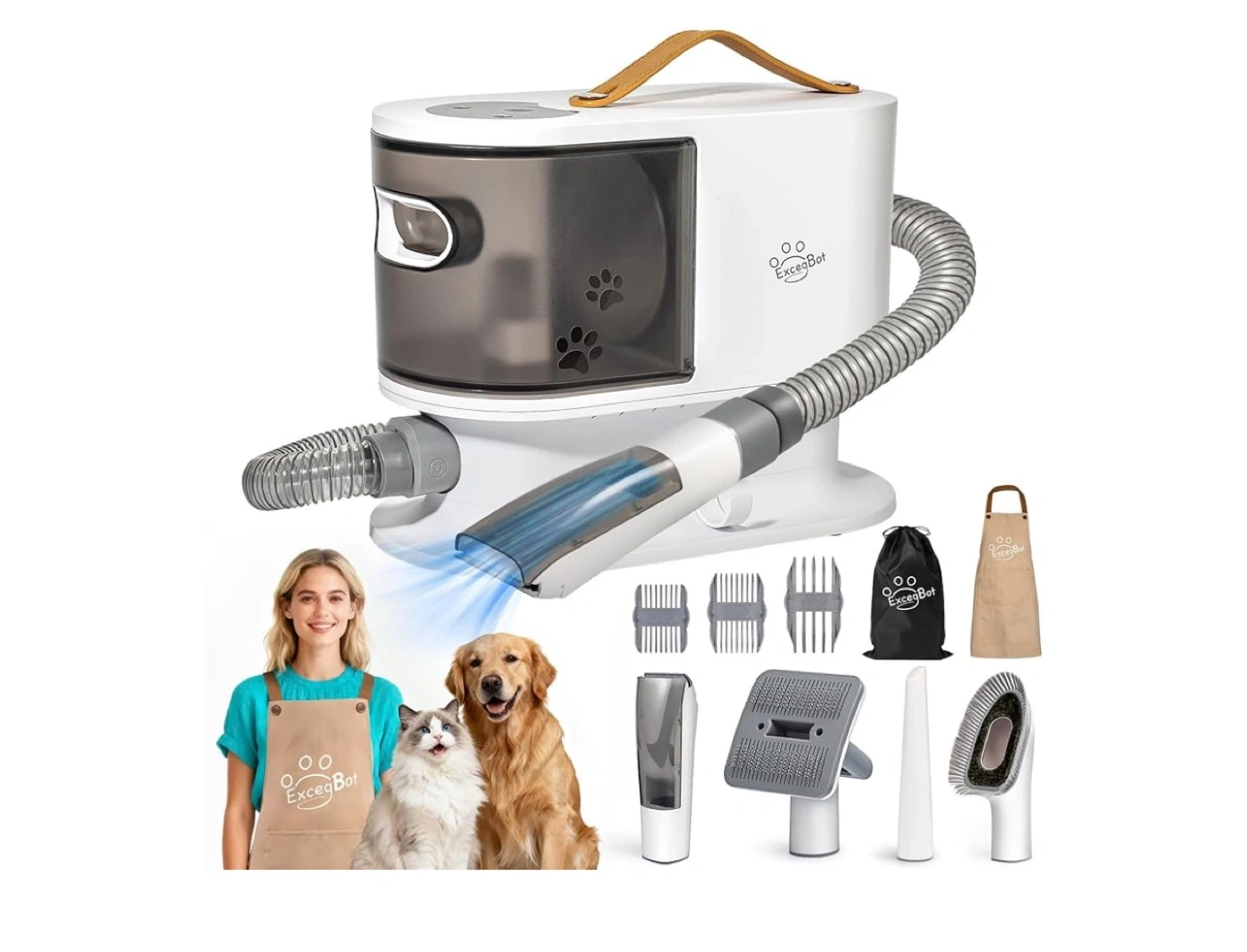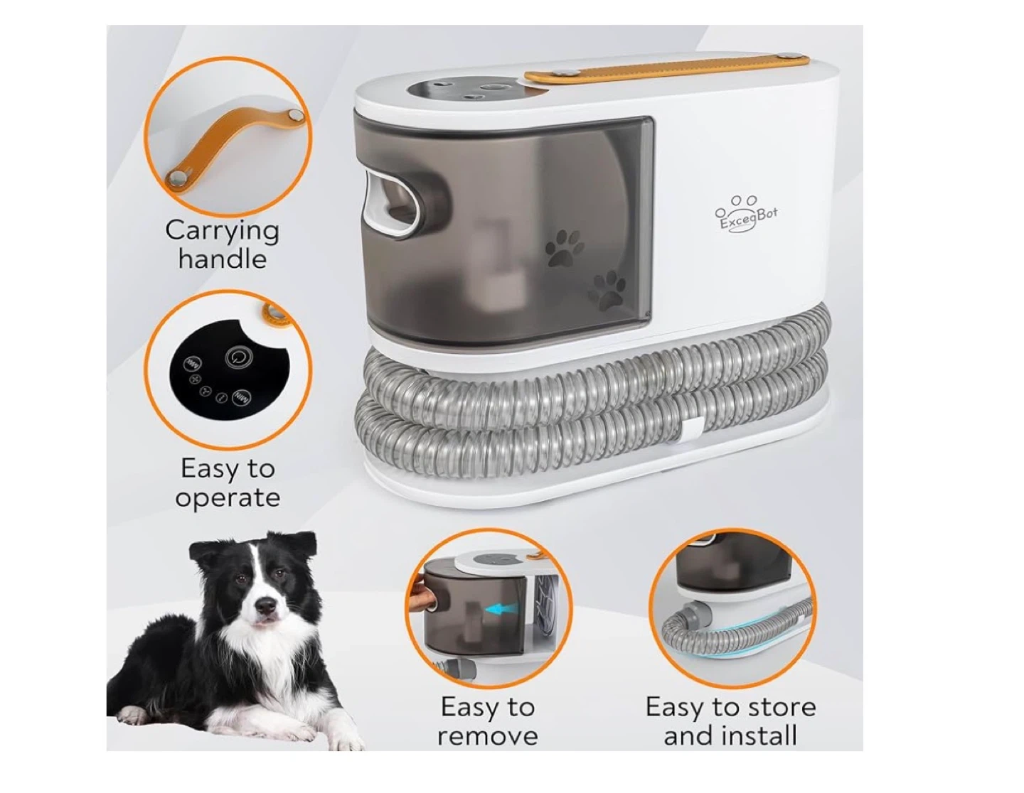 Keep your furry friends looking their best with this Excegbat pet grooming kit! It features a vacuum function to collect hair effortlessly. The kit includes 6 sizes of guide combs (3mm, 6mm, 9mm, 12mm, 18mm, and 24mm) suitable for all types of pet hair. It also comes with a grooming brush and clean tool.