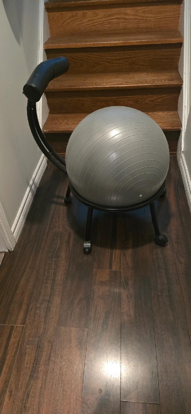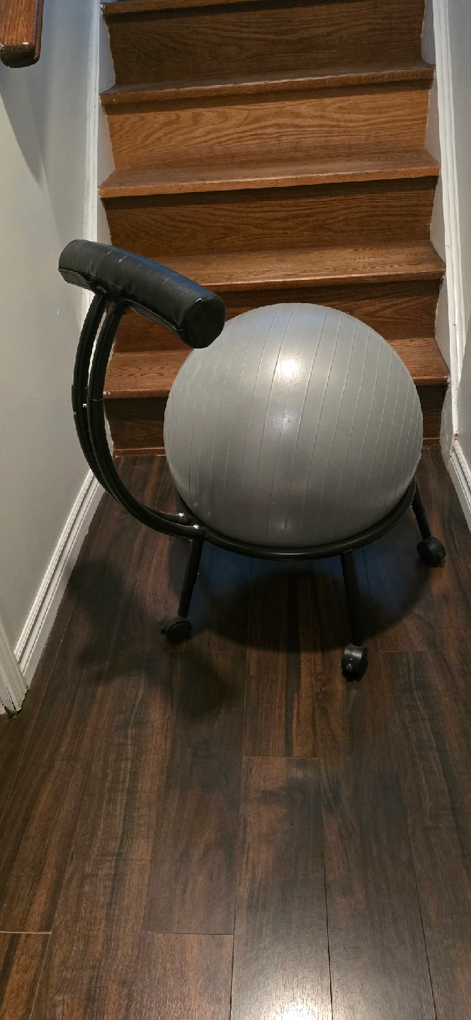 Selling an exercise ball chair! It's in great condition and ready for a new home. Perfect for improving your posture while working or studying. It has a supportive back and rolls easily