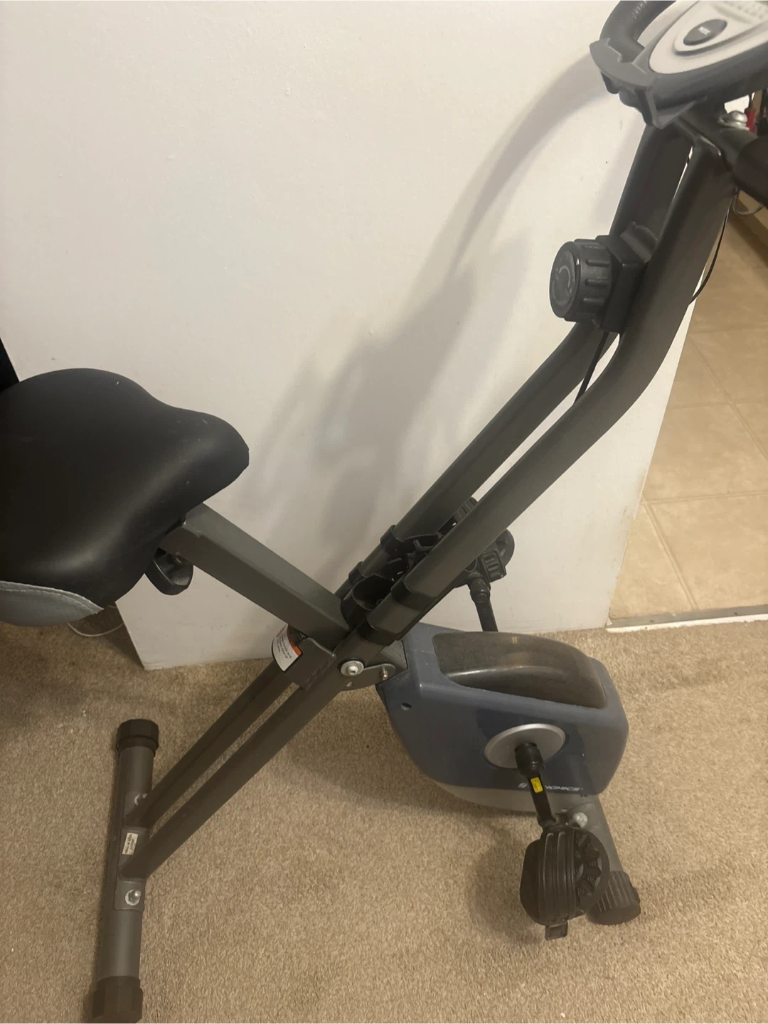 Get in shape with this compact exercise bike! This used bike is perfect for small spaces and provides a great cardio workout. It features adjustable resistance, a digital display, and a comfortable seat. Additional Features: * Adjustable seat height * Digital display for tracking time, speed, distance, and calories * Compact and foldable design for easy storage Looking to cycle your way to fitness? This exercise bike is just the ticket! If the ad is up, the bike is available, so you can pedal towards a healthier you today!