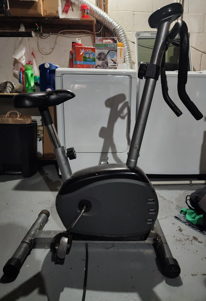Selling a used stationary exercise bike. It has some wear and tear, as shown in the pictures, but it's still functional. Great for a home workout! Pet friendly and smoke friendly $75 or best offer