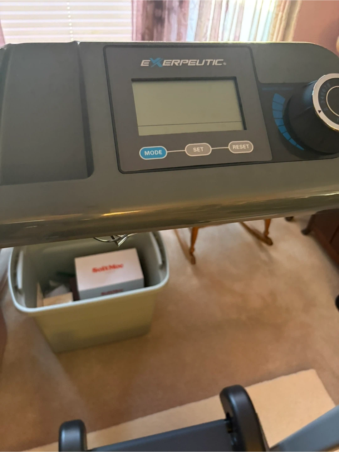 Selling an Exerpeutic treadmill in good condition. It has a display with mode, set, and reset buttons. Perfect for staying active at home!