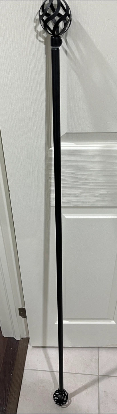 Elegant black metal curtain rod. Features decorative finials. Excellent for adding a touch of style to your windows.