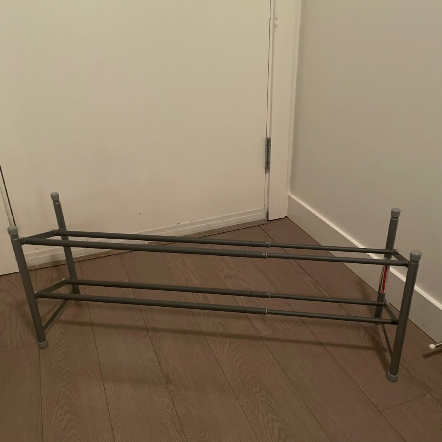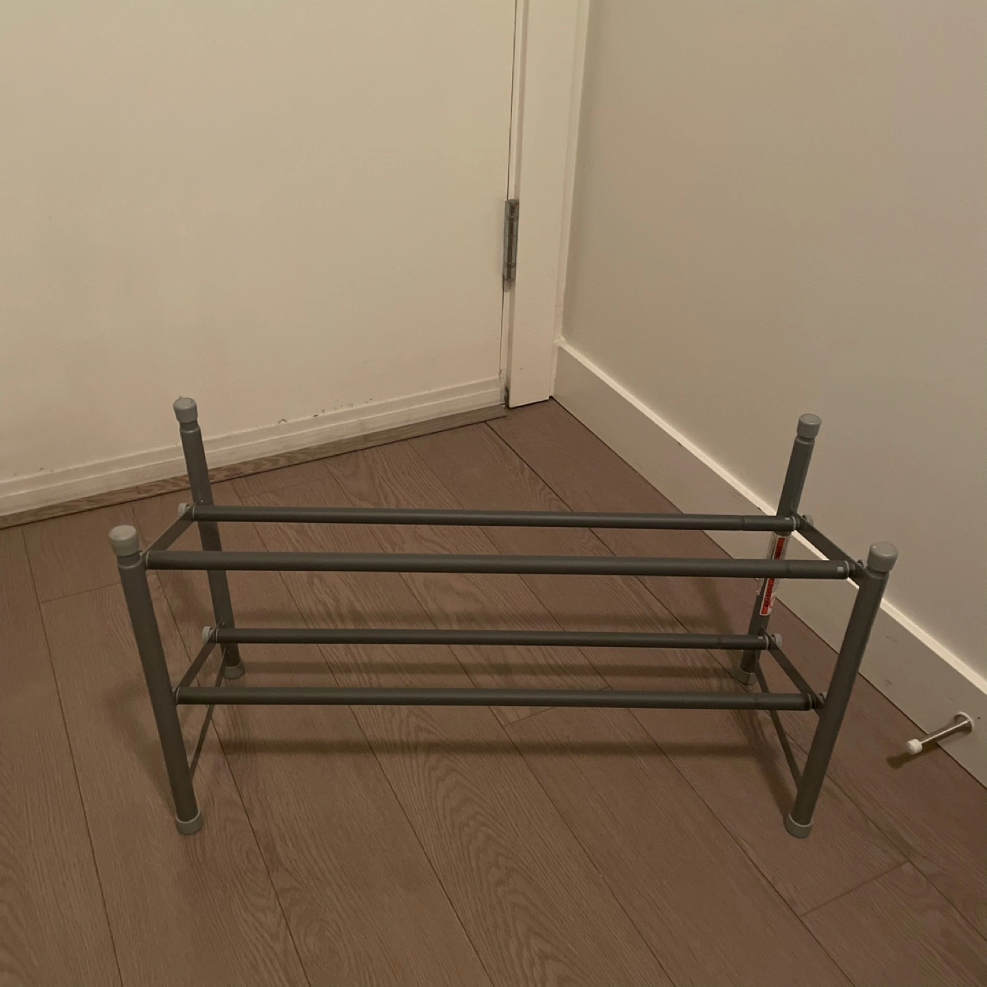 I'm selling a gray metal shoe rack with two tiers. It's perfect for keeping your entryway or closet organized. It's in great condition and ready for a new home! pickup near surrey central station