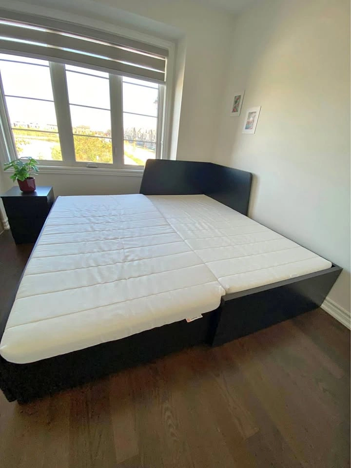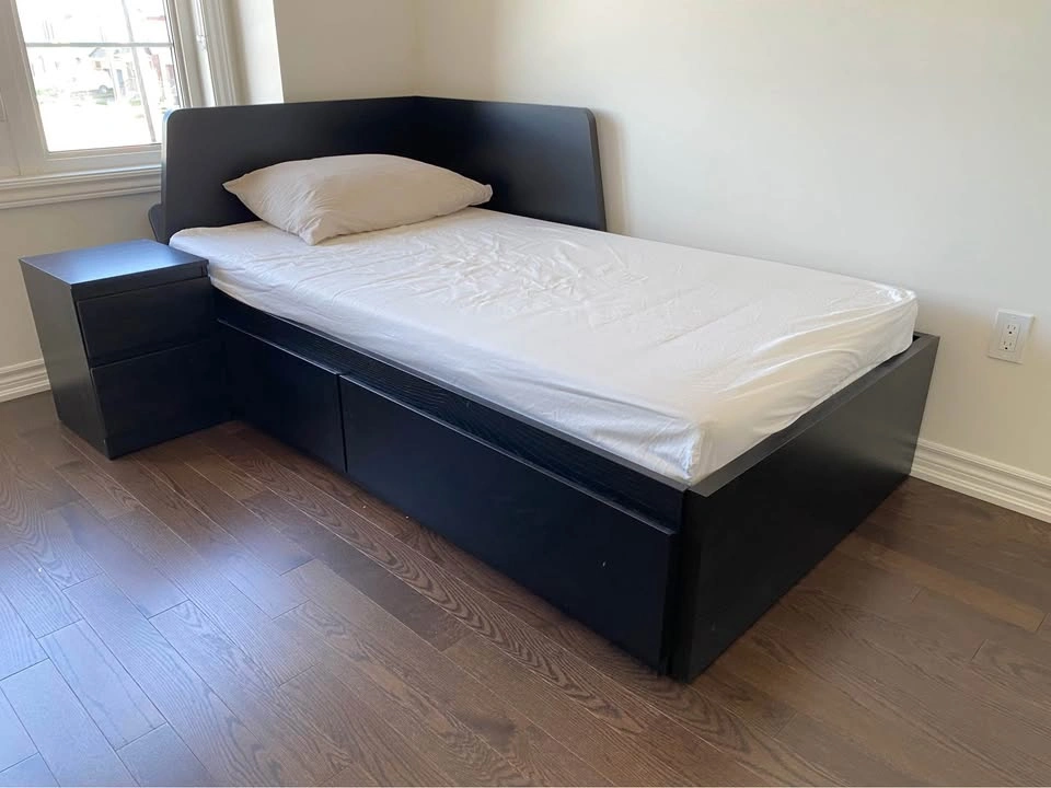 Expandable Single/Double Bed with Storage Drawers + Nightstand – Good Condition Versatile black bed frame that converts from a comfy single to a spacious double in seconds! Includes built-in storage drawers for extra bedding or clothing, and a matching nightstand. Perfect for guest rooms or kids’ rooms. Sturdy, gently used, and easy to assemble/disassemble. Mattress included. - Converts from single to double size - Ample storage drawers underneath - Sleek black finish; modern style - Includes matching nightstand - Pickup in Milton, ON