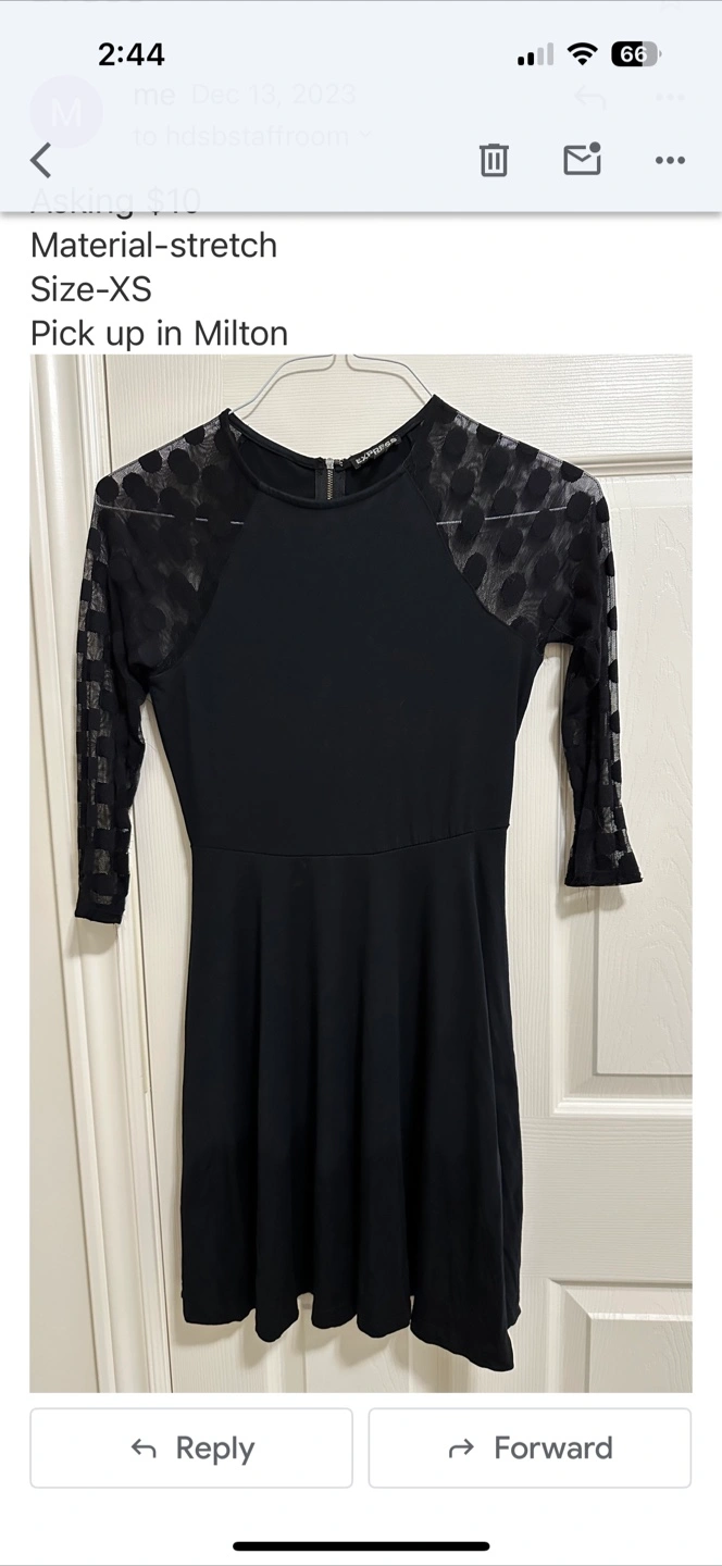 Selling a cute black dress from Express! It's a size XS and has a stretchy material. Perfect for a night out or a special occasion!