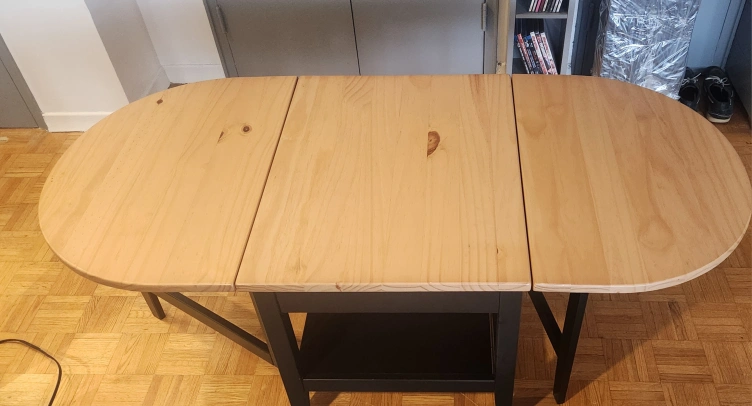 Selling a gently used extendable dining table. It features a light wood top and a black base. The table is in good condition and perfect for smaller spaces that need flexibility! Dimensions are approximately 25 inches wide. It has a few minor scratches as you will see in photos. Selling AS IS.