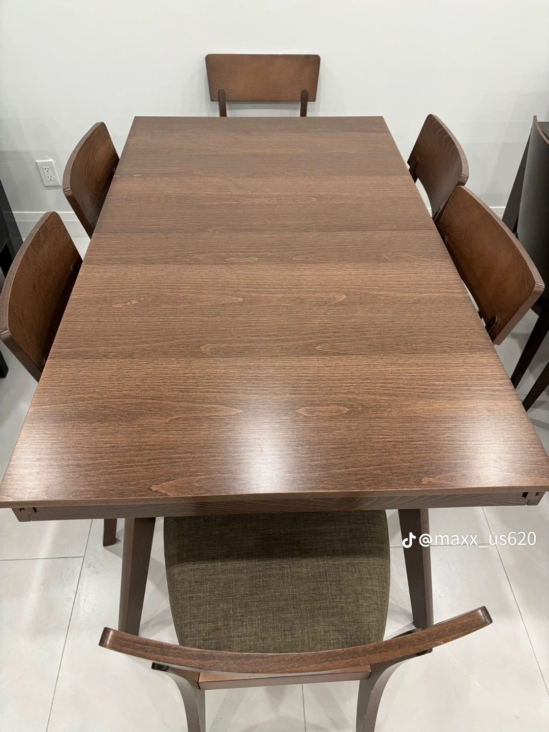 Selling a lovely extendable dining table set with 6 chairs! The table is a rich brown wood and can be adjusted to accommodate more guests, perfect for family dinners or gatherings. The chairs are a matching wood with comfortable seating. It's in great condition and ready for a new home!