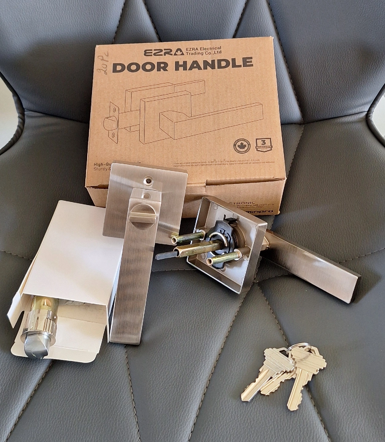 Selling a brand new Ezra Electrical Trading Co. Ltd. door handle set! It's still in the box and includes all the necessary components for installation. High-quality materials, sturdy and durable Ezra Alloy door handles. Price List. Entry door 3 keys: 30$ each. Privacy Door: 25$ each. Passage Door: 25$ each. Regular Door Handle: 20$. Buy all for 90$ cash. Location: Cornerstone Boulevard ne