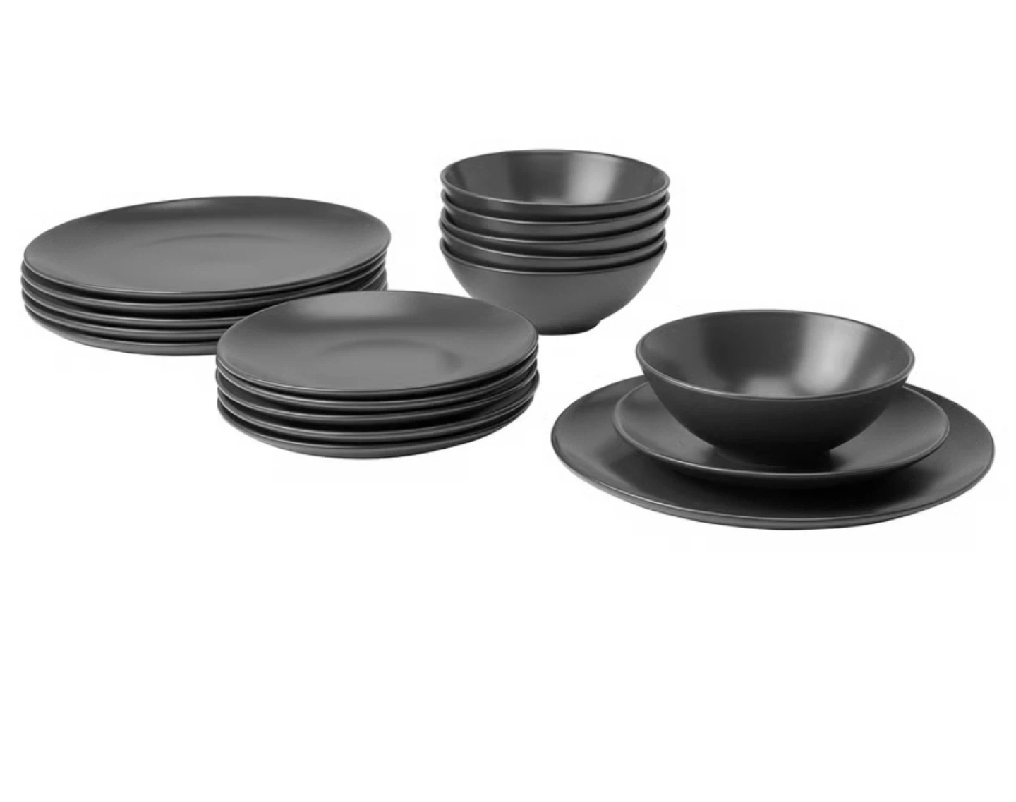 Looking to add some sleek, modern vibes to your dinner table? I'm selling a set of IKEA dinnerware in dark grey( looks matt black) This set includes plates and bowls, perfect for everyday meals or special occasions. They're in great shape and ready to go to a new home!