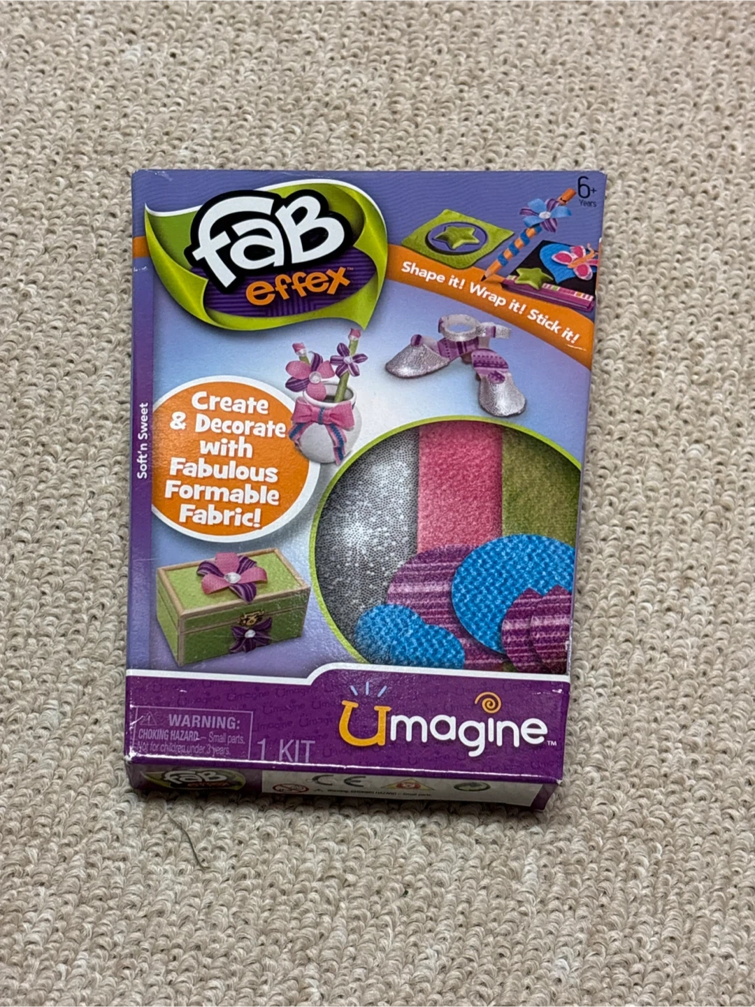Selling a Fab Effex Soft'n Sweet craft kit by Umagine! This kit allows you to create and decorate with fabulous formable fabric. It's suitable for ages 6 and up. Shape it, wrap it, and stick it!