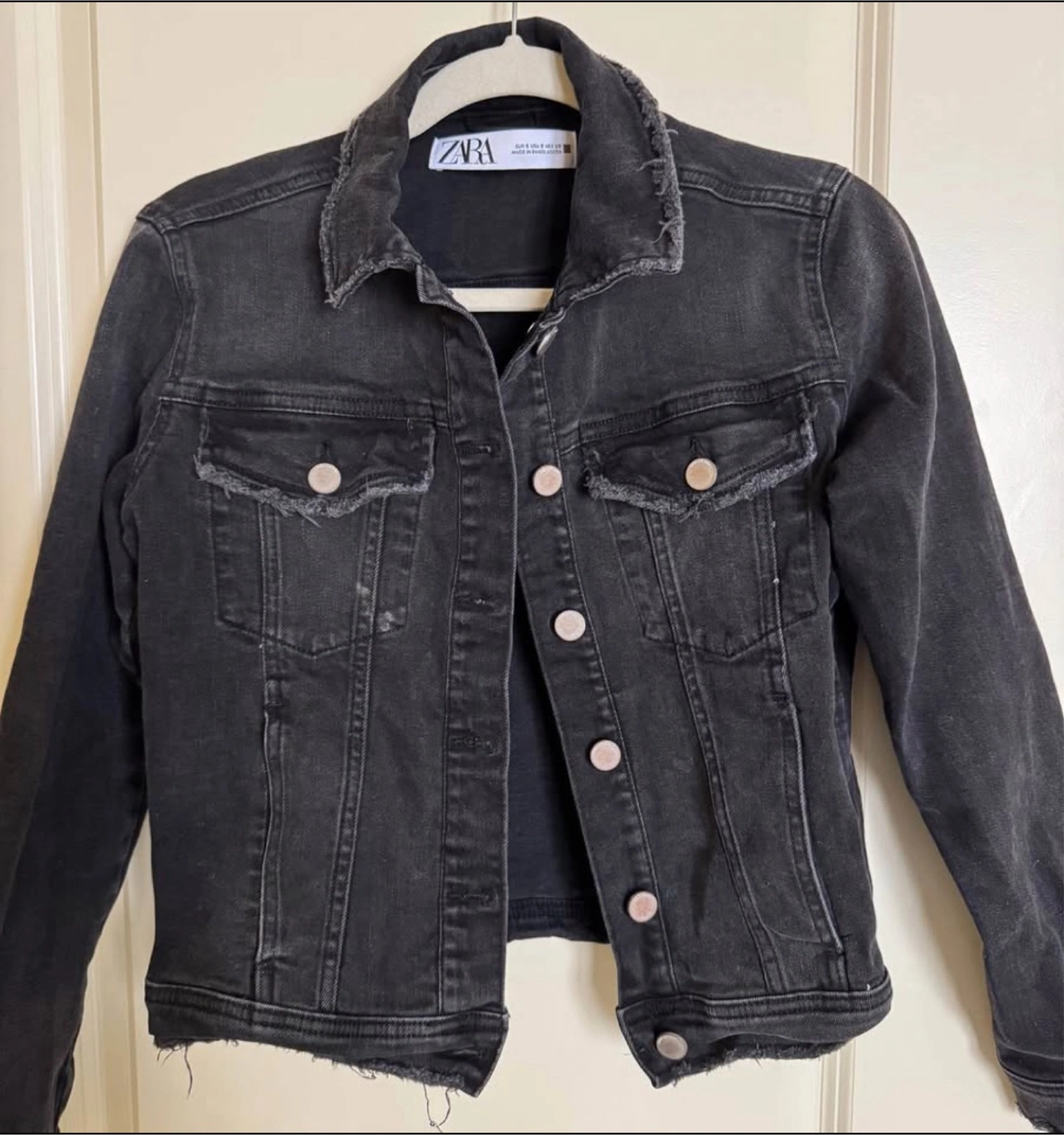 Faded Denim Jean Jacket with Pockets by Zara - Size: small - Length: regular - Colour: black - Condition: worn, good condition - Price: purchased for $65.90 accepting cash or e-transfer available for pick up or drop off *far distances from location may be charged a $5.00 fee) all clothing is washed before pickup/drop off