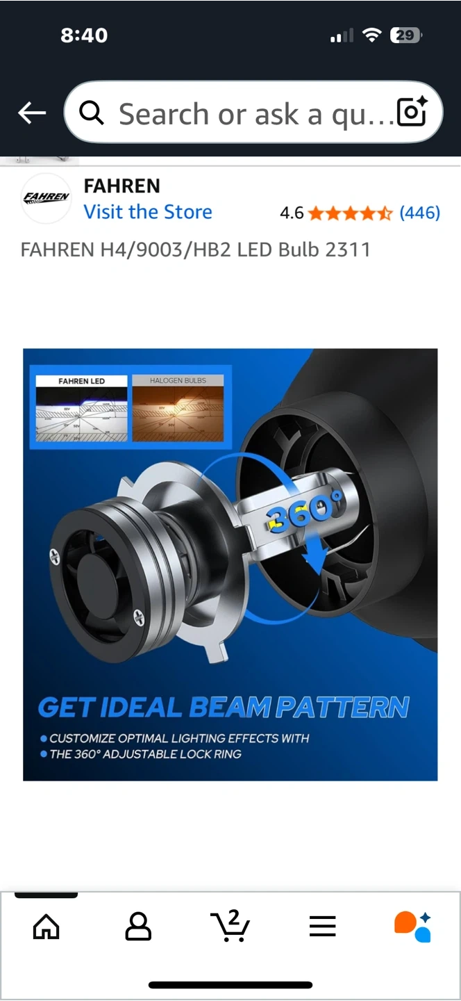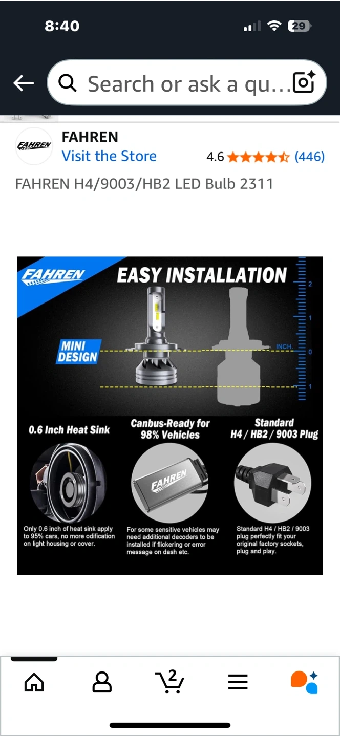 Selling a FAHREN H4/9003/HB2 LED Bulb 2311. This bulb features: - Customizable optimal lighting effects - 360° adjustable lock ring - 12 chips for a chip breakthrough - Easy installation - Mini design with a 0.6 inch heat sink - Canbus-ready for 98% of vehicles - Standard H4/HB2/9003 plug