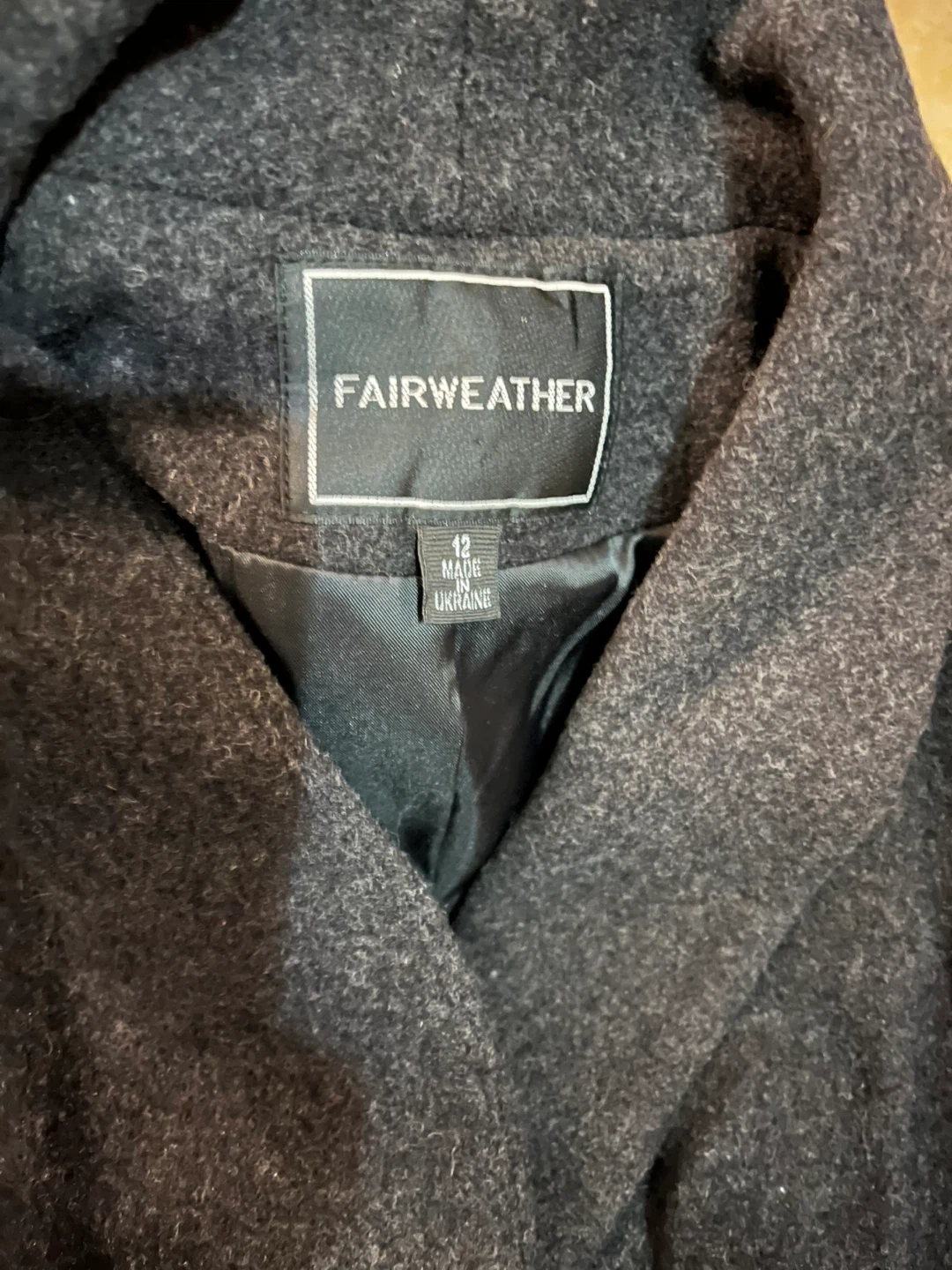 š¤Classic Fairweather wool coat, perfect for the Canadian winter! š¤48ā long š¤Made in Ukraine š¤It's a size 12 and made of 100% pure wool. š¤This coat is in great condition and ready to keep you warm and stylish Pick up only Cash only