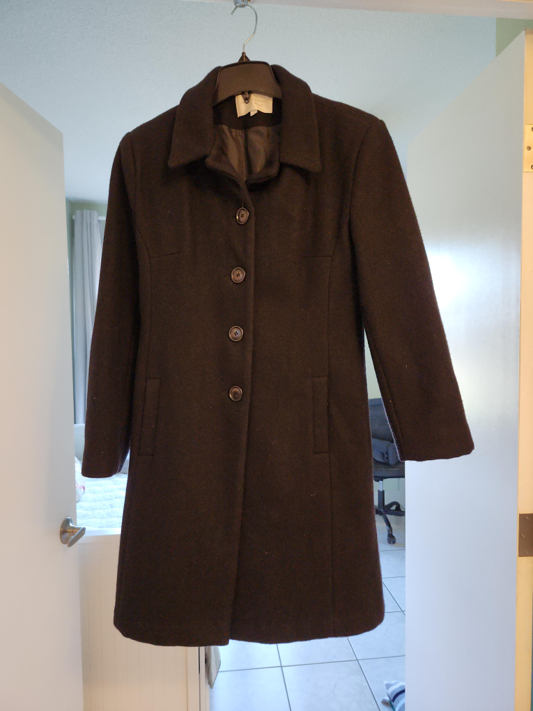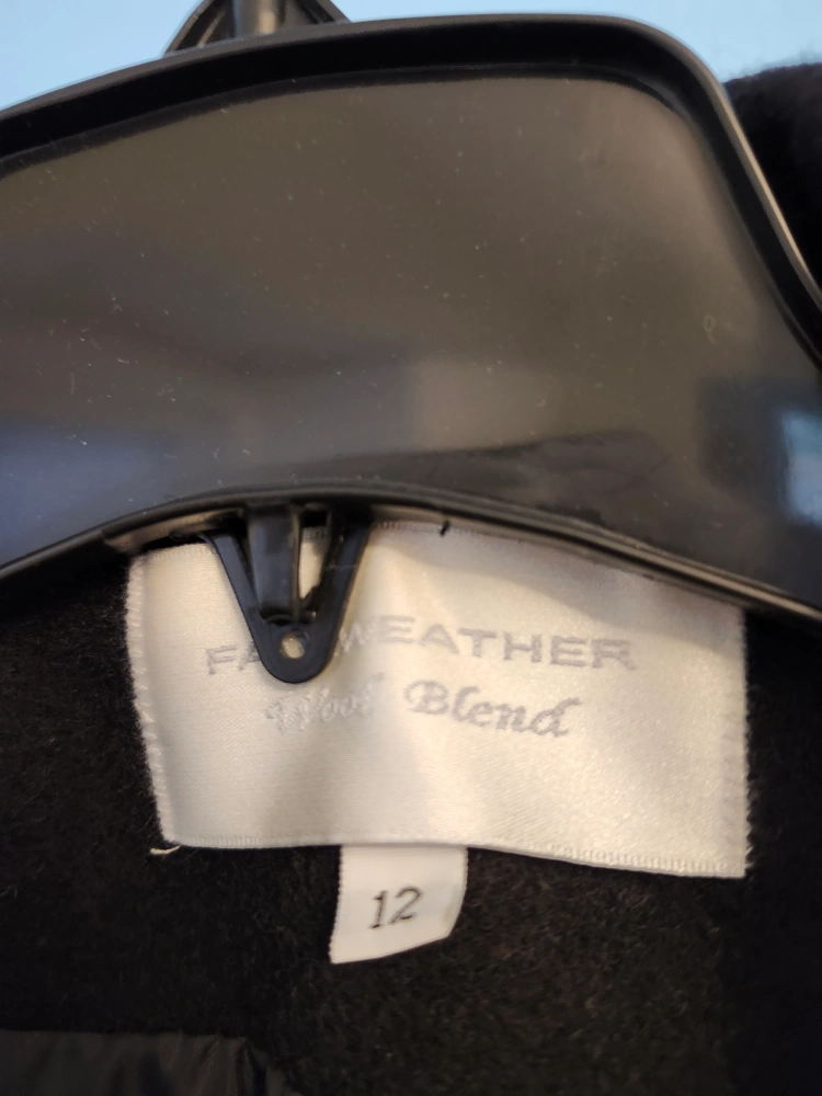 Selling a Fairweather wool blend coat in great condition! It's a size 12 and perfect for the cooler weather. The classic design will keep you warm and stylish. Pick up Renforth and Eglinton in Etobicoke. Possible drop off in E Mississauga, N York or Milton depending on my schedule. Non-smoking home.
