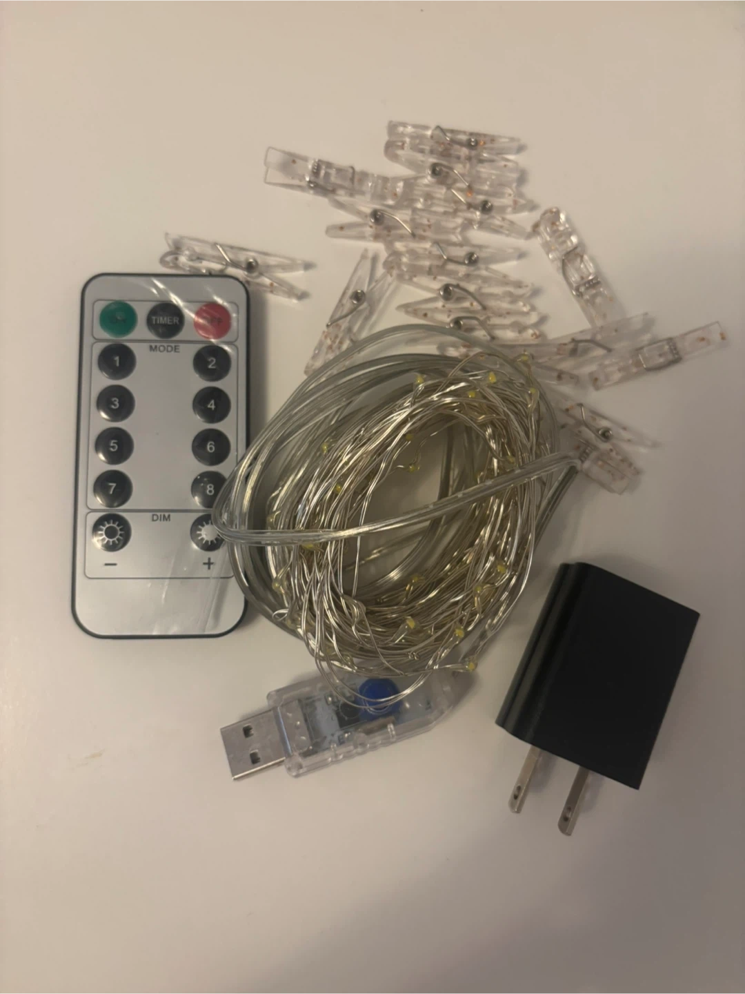 Selling a set of string lights that come with a remote control. - comes with remote and transparent clips - in excellent condition.