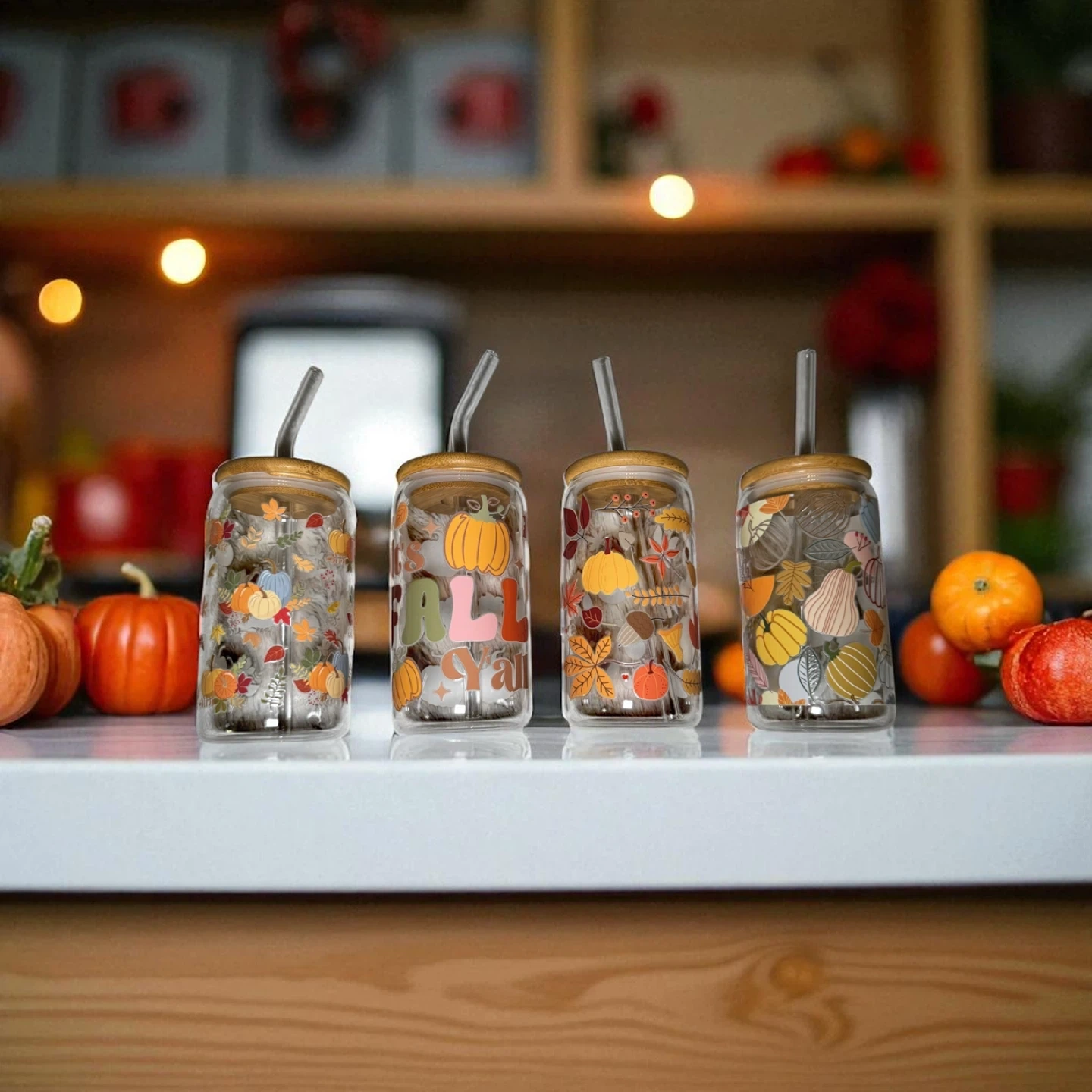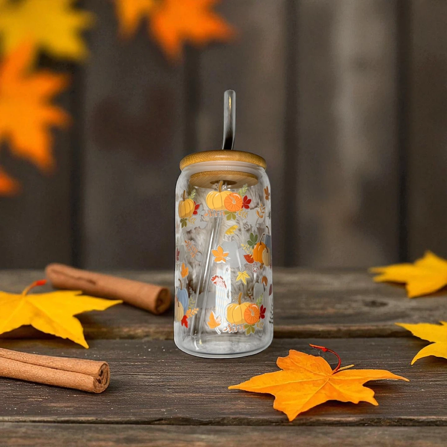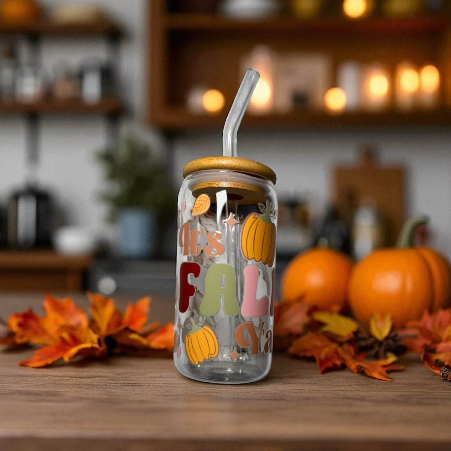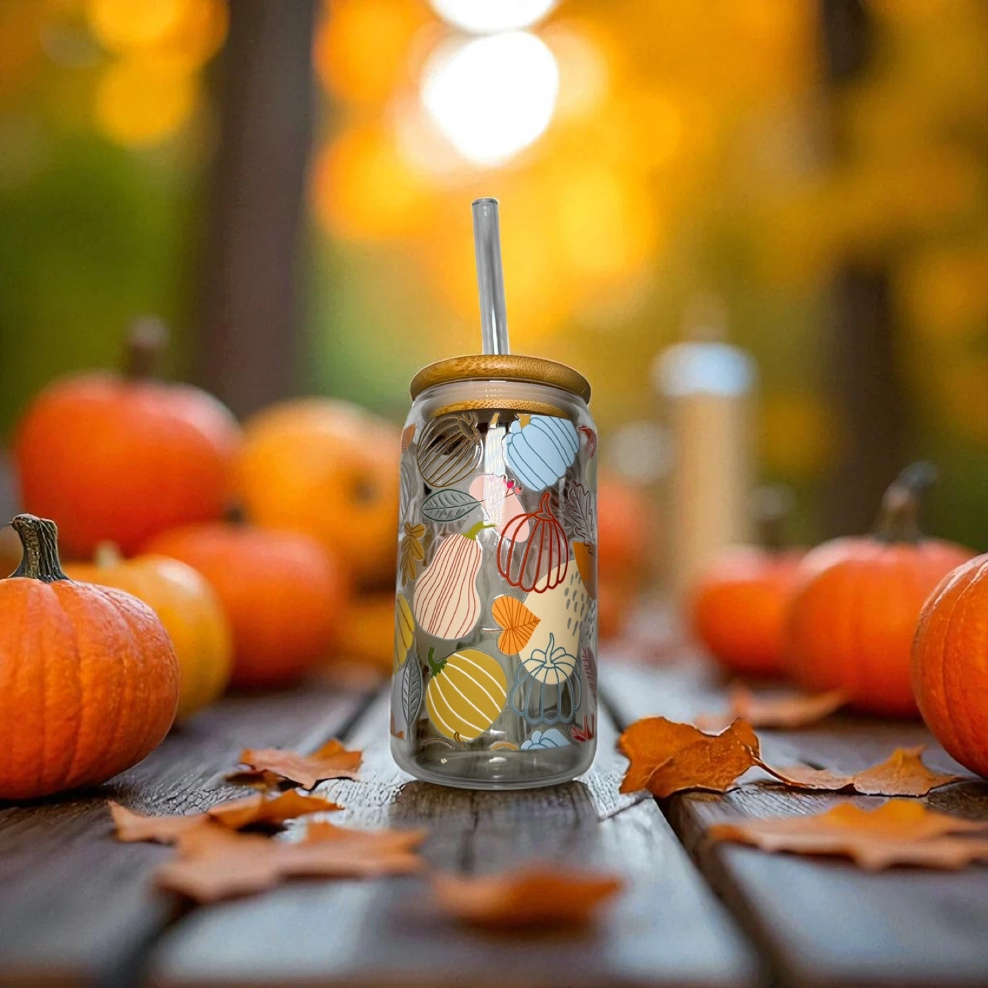 Fall Glass Tumblers – 16 oz 🎃 Sip in seasonal style! These high-quality glass can cups come with bamboo lids and reusable straws—perfect for iced coffee, tea, or your favorite fall drink. 💛 Details: • 16 oz glass can with bamboo lid & clear reusable straw • High-quality UVDTF transfers • Hand-wash only for longest life • Perfect for gifts, parties, or treating yourself! 🍁 Pick your favorite design and bring a little autumn magic to every sip.