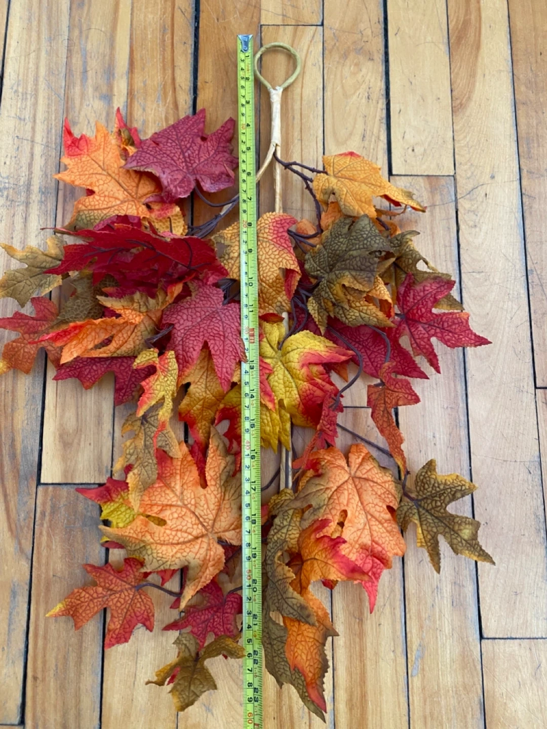 Fall Leaves Decoration It measures approximately 30 inches in length, perfect for hanging on a door, wall, or mantel.