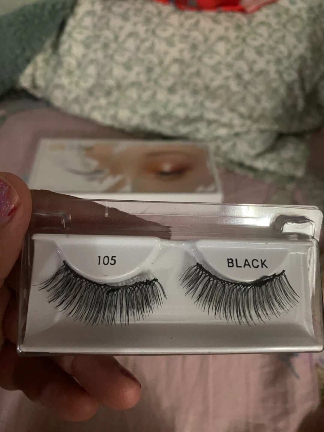 a pair of false eyelashes in black, style 105. They're in great condition and ready to add some flair to your look Note: has been used once! Free! (PICKUP ONLY)