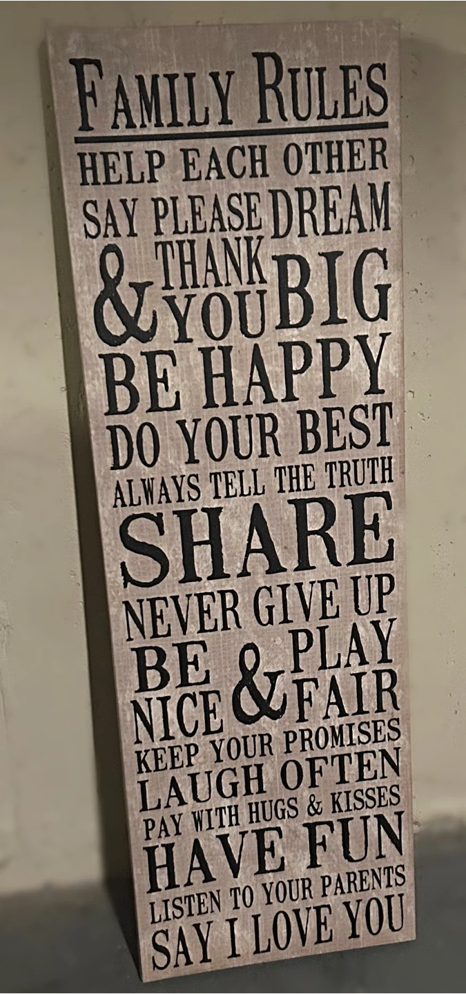 • PICK UP ONLY • Spruce up your home with this charming 'Family Rules' wall decor! It's a lovely piece that adds a touch of warmth and inspiration to any room. Perfect for creating a cozy and inviting atmosphere for your family and friends! Asking $15 OBO. Open to offers! :)