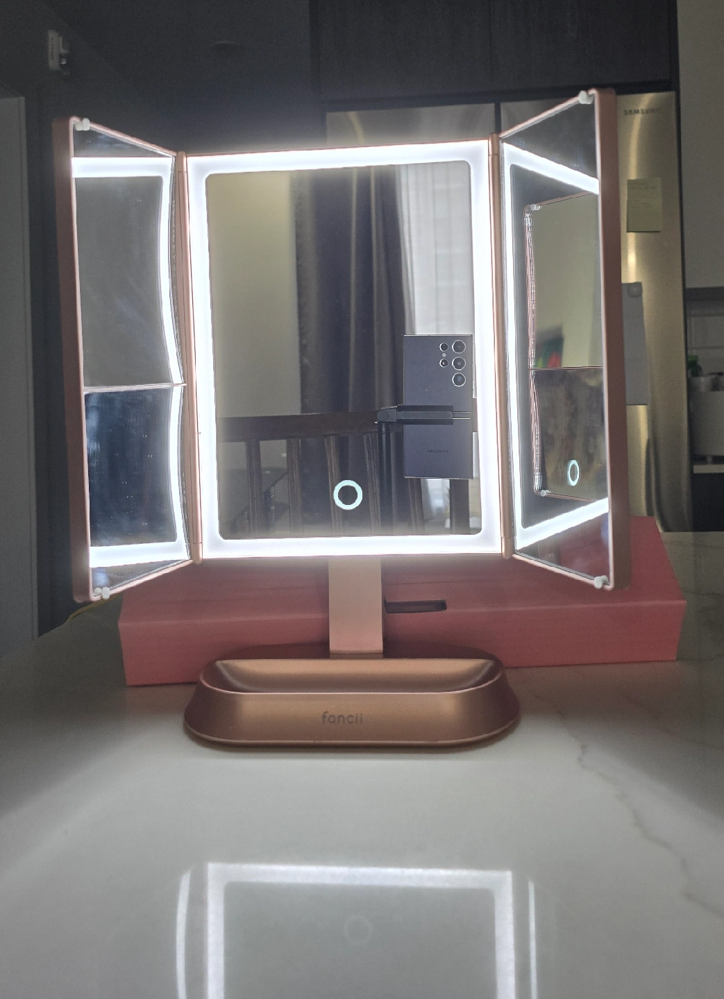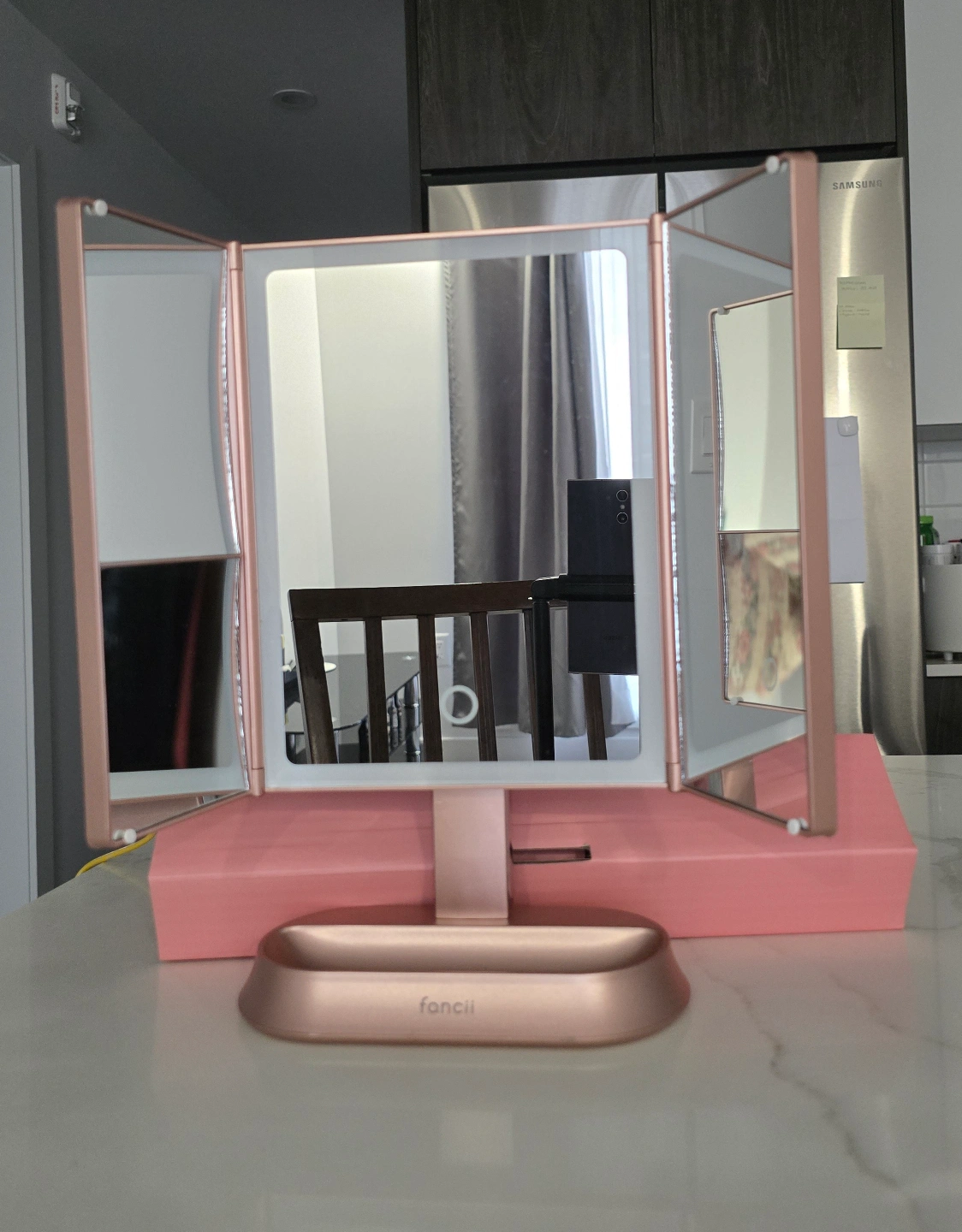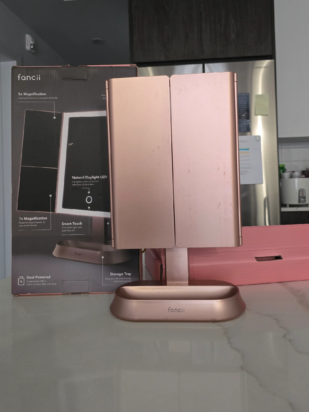 Selling a Fancii LED Tri-Fold Lighted Vanity Makeup Mirror! It has 5x and 7x magnification to view small details. It also has a smart-touch dimmable light with auto-shut off. It has a storage tray to keep your beauty essentials nearby. It is dual powered and requires 4 AA batteries (not included).