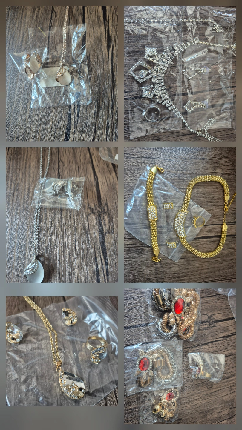 Selling a variety of fashion jewelry sets! Includes necklaces, earrings, rings, and bracelets in various styles and colours. All sets are brand new and still in their original packaging. Perfect for adding some sparkle to your outfit! $20 for the whole lot