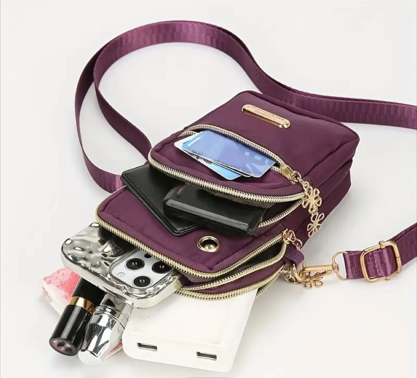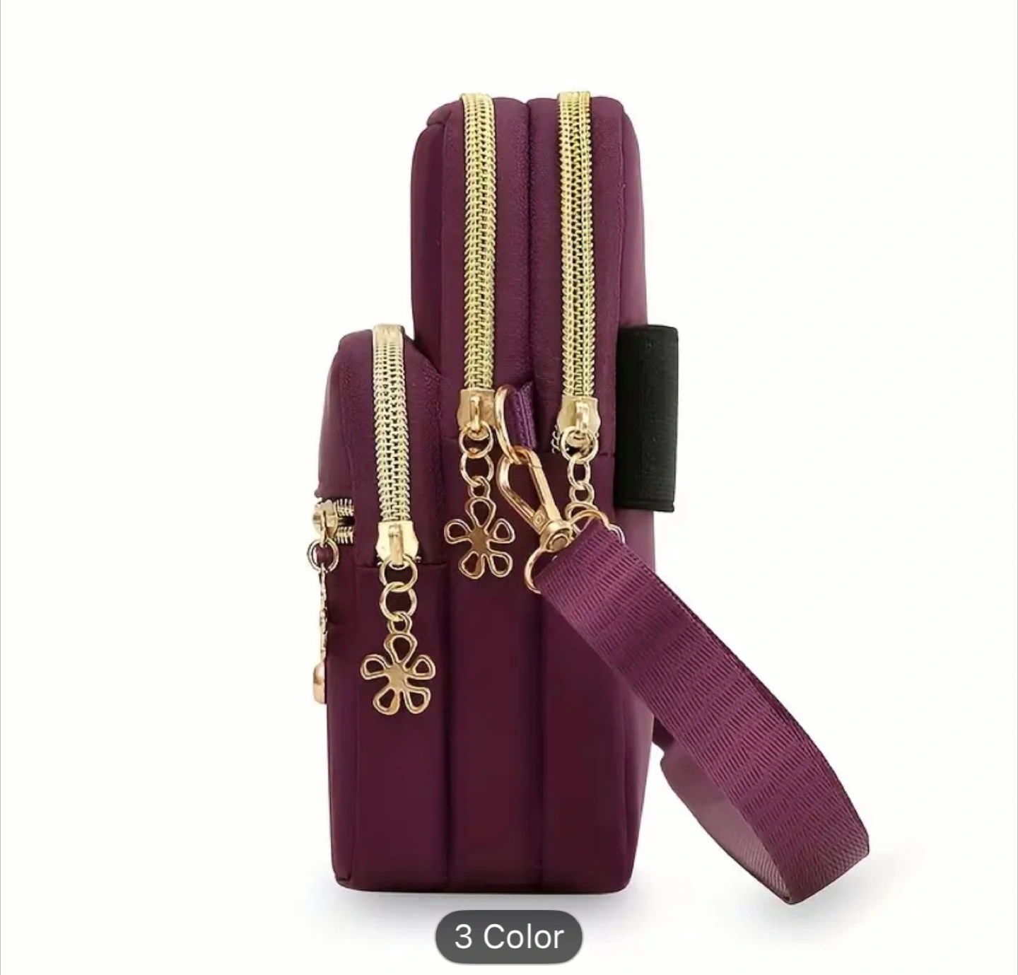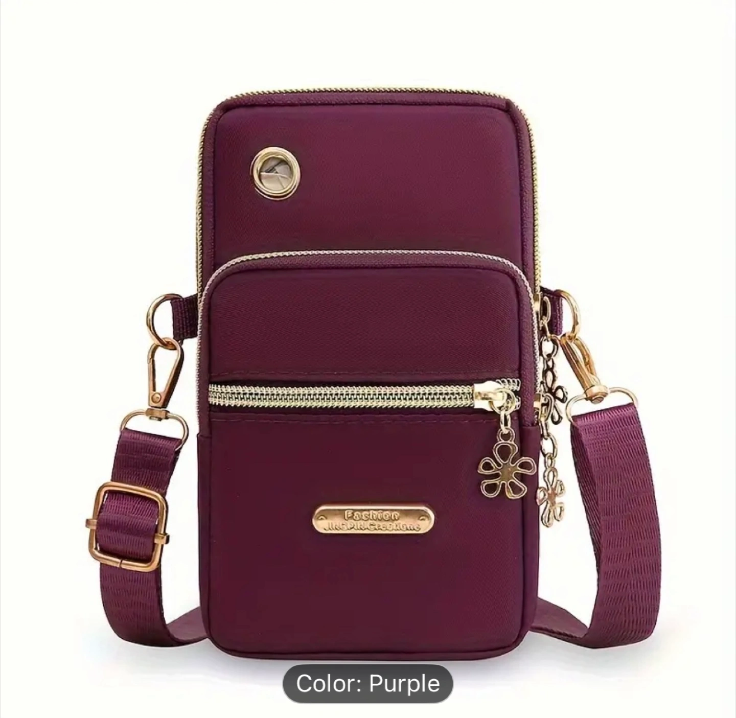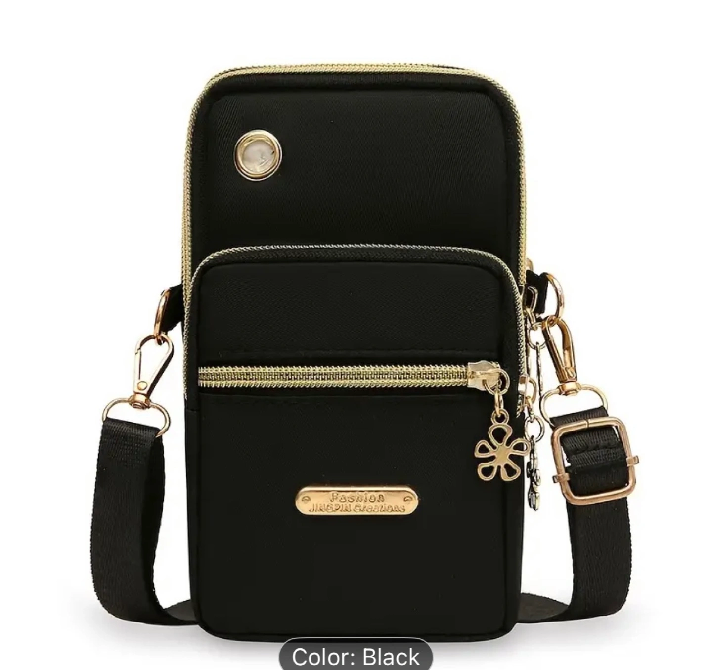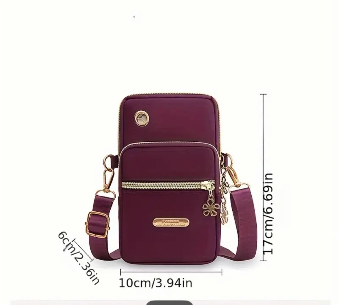 This crossbody cellphone bag is perfect for keeping your essentials close! It features a cute flower charm and comes in a variety of colours. The bag is made of nylon and measures approximately 17cm x 10cm x 6cm