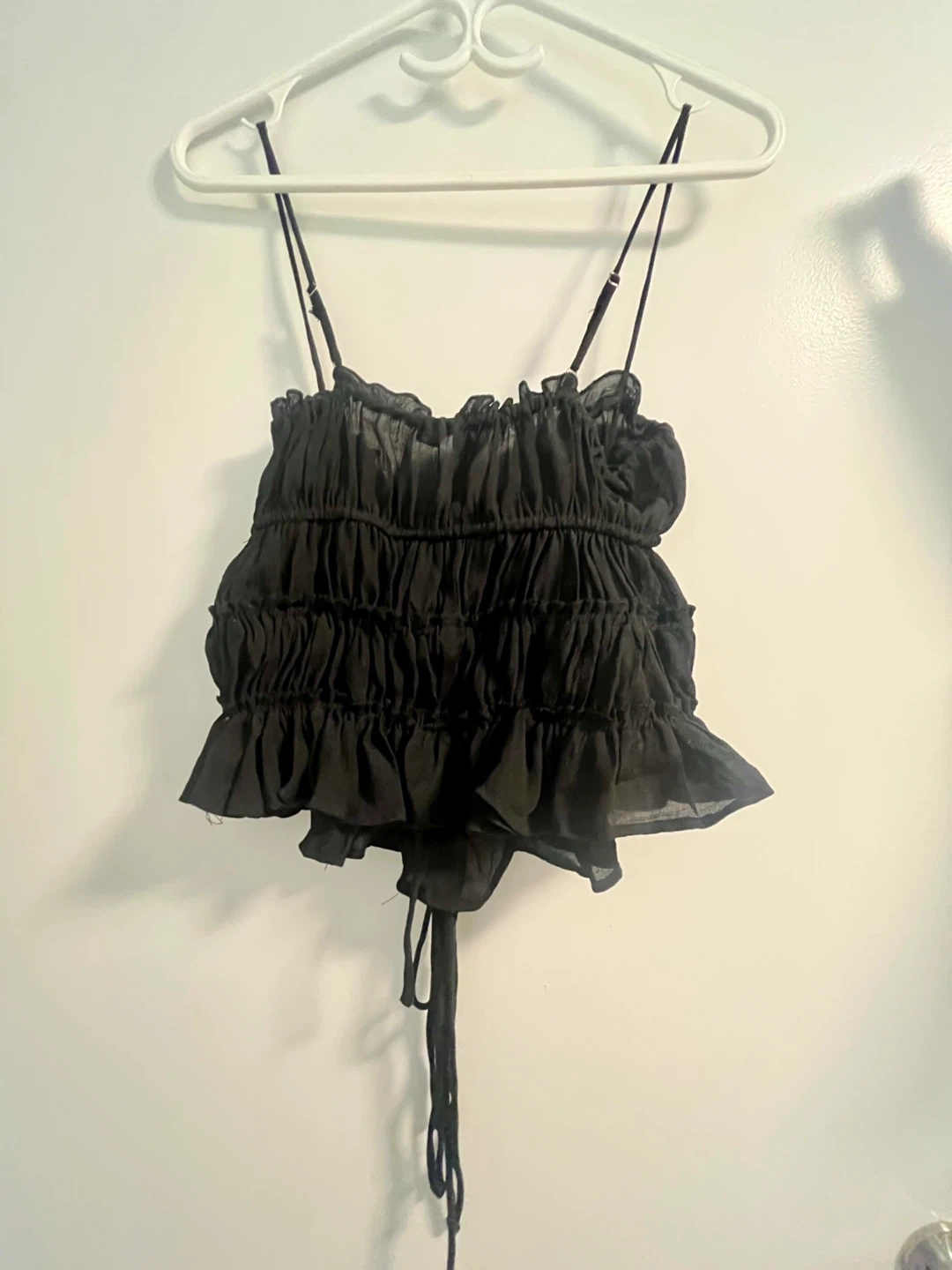Selling a cute black cami top from Fashion Nova! It's a size small and made of 65% rayon and 35% polyester. Perfect for a night out or dressing up any outfit! Pickup downtown and cash only!