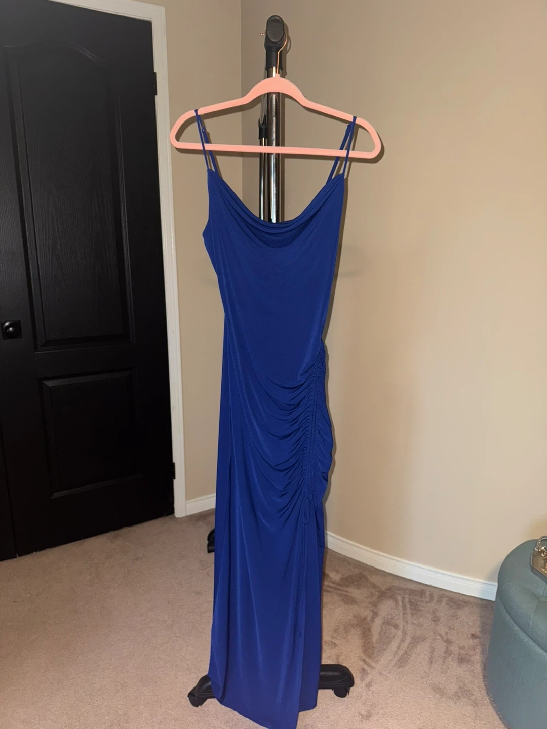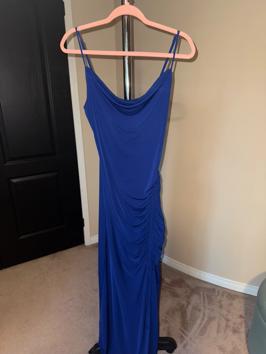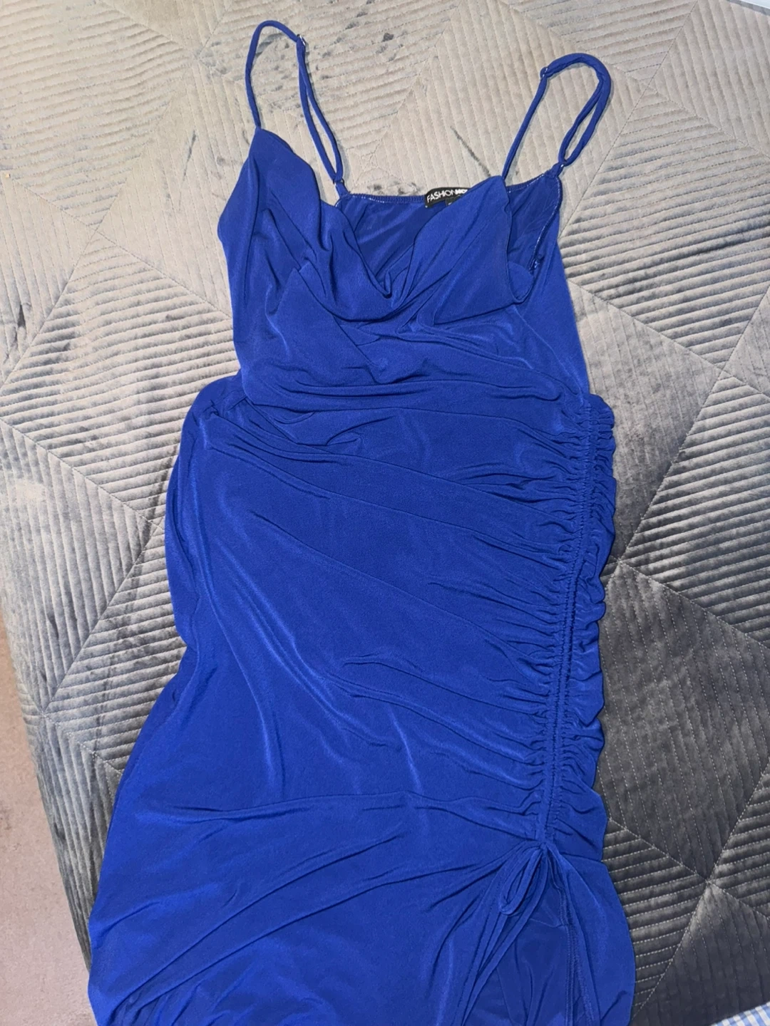 Selling a beautiful blue dress from Fashion Nova! It features a flattering ruched design. Perfect for a night out or a special occasion. Worn once, Size large