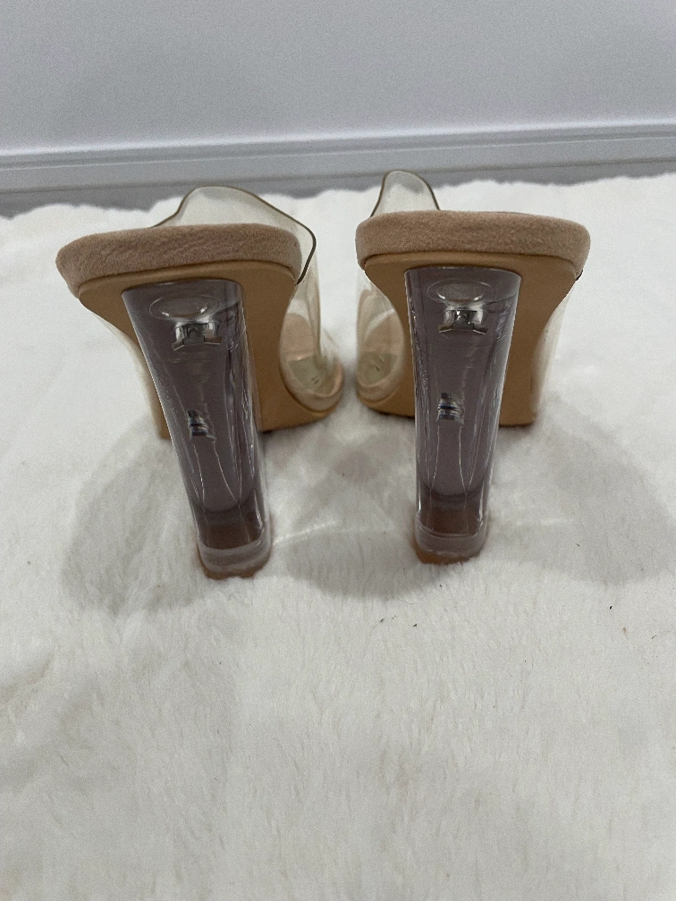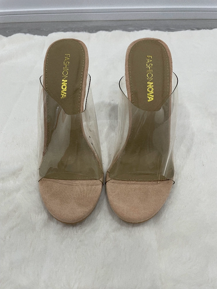 These Fashion Nova clear heels are a stylish addition to any wardrobe! They feature a unique clear design and a comfortable fit. Perfect for a night out or a special occasion