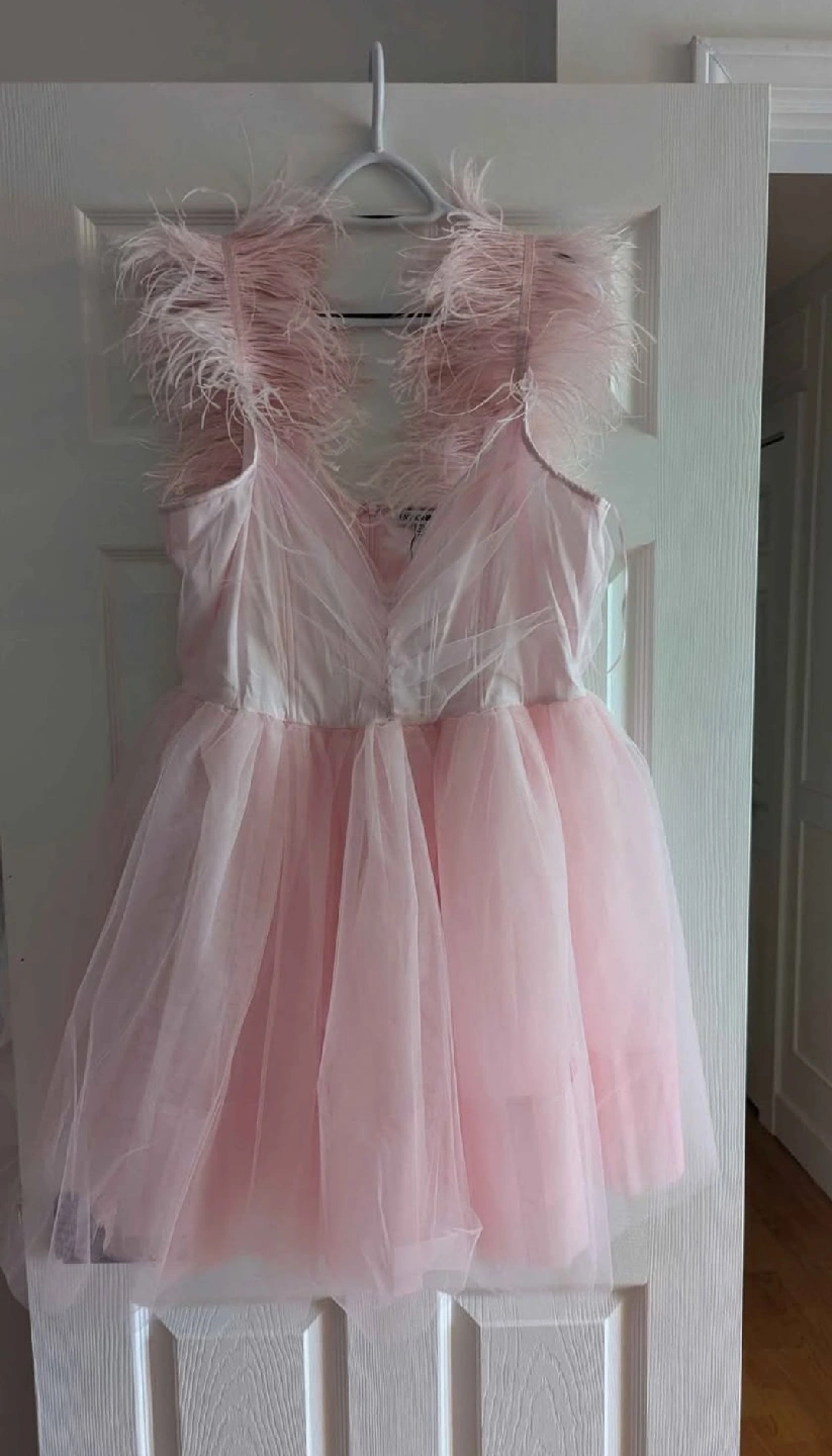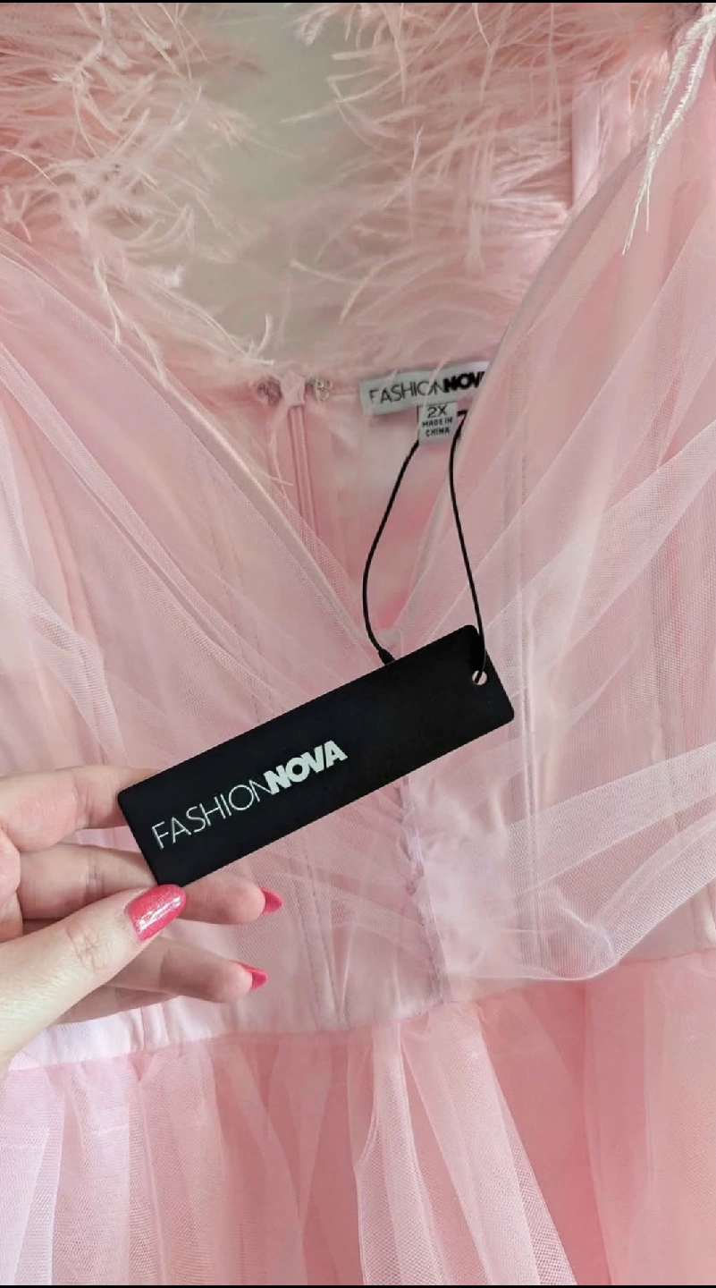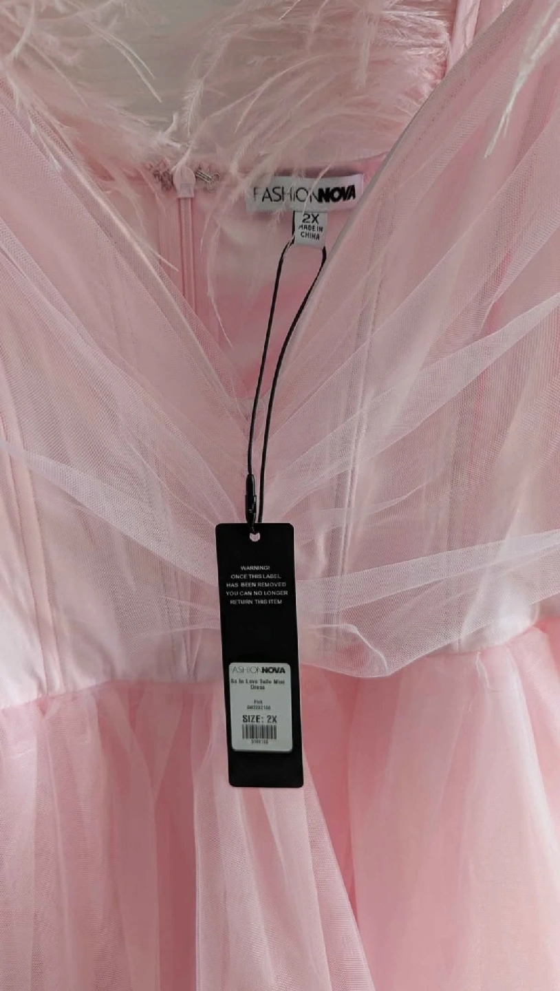 Selling a brand new Fashion Nova So Extra Mini Dress in size 2X! This adorable pink dress features a tulle skirt and feather detailing on the straps. Perfect for a special occasion or a fun night out