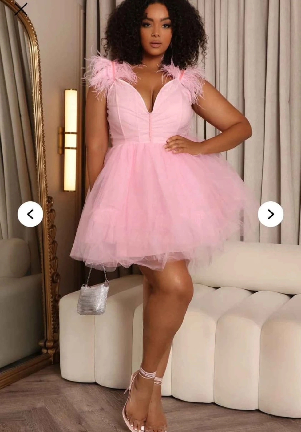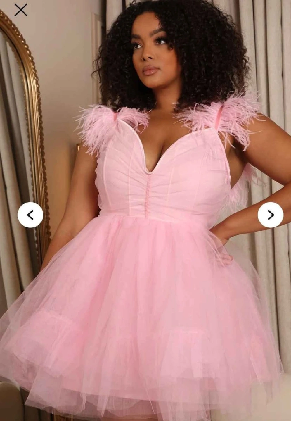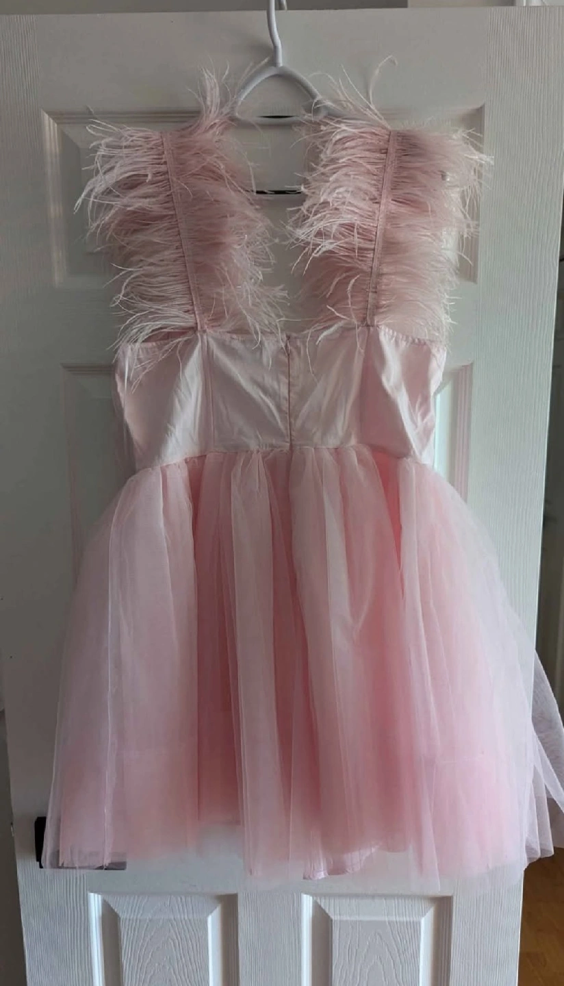Selling a brand new Fashion Nova So Extra Mini Dress in size 2X! This adorable pink dress features a tulle skirt and feather detailing on the straps. Perfect for a special occasion or a fun night out