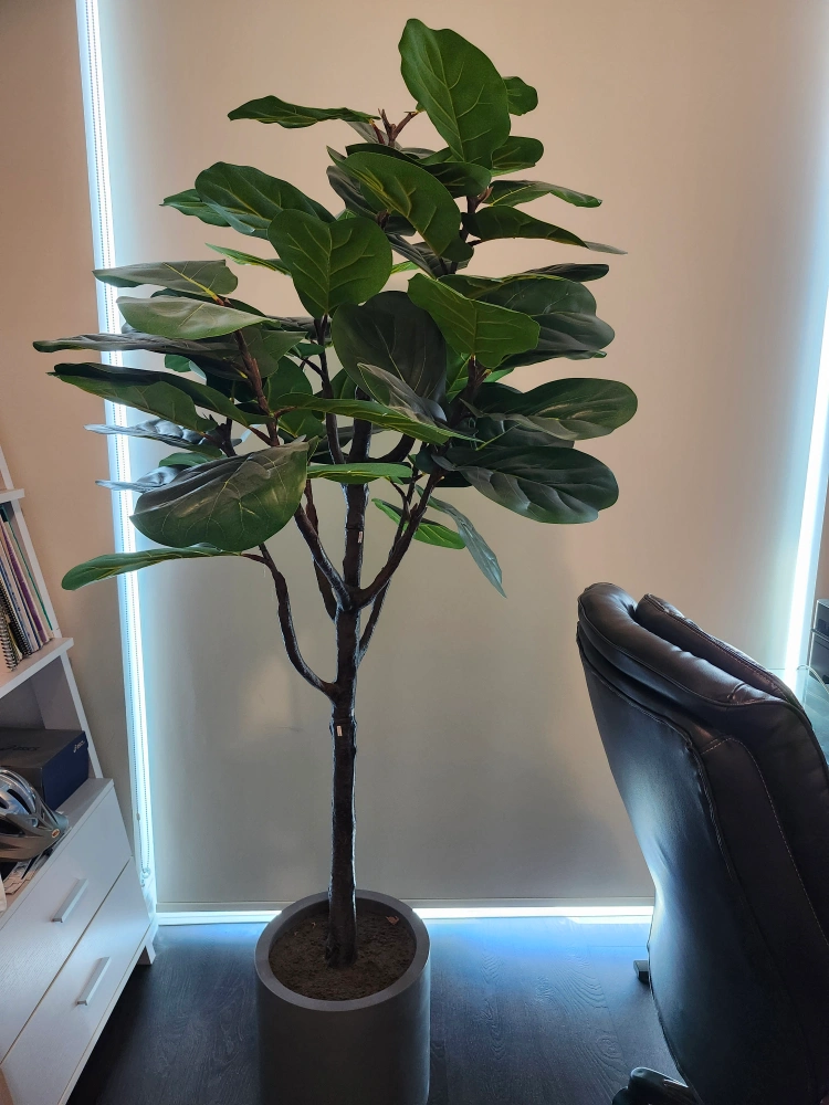 Selling a faux fiddle leaf fig tree! It's in great condition and would look lovely in any space. It comes in a modern-looking pot and is ready to bring some greenery into your home or office