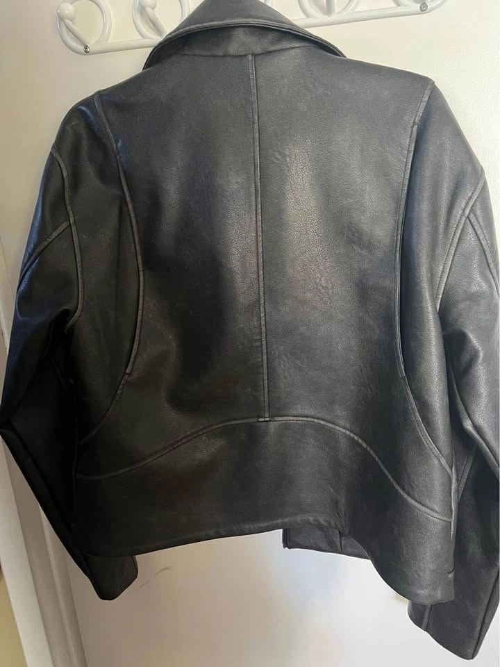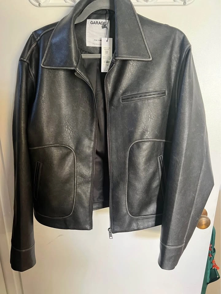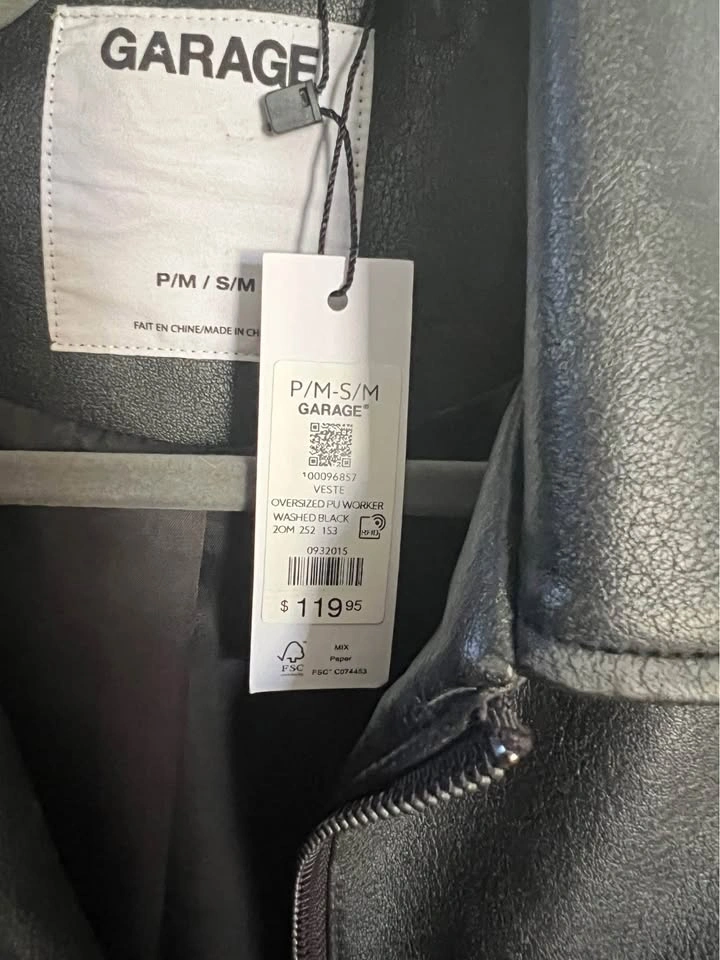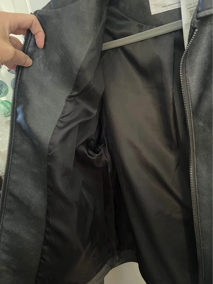 Price is firm. Black, Size S/M, bought from Garage. Oversized fit. With tax this jacket cost $135. Pick up only - auditorium area