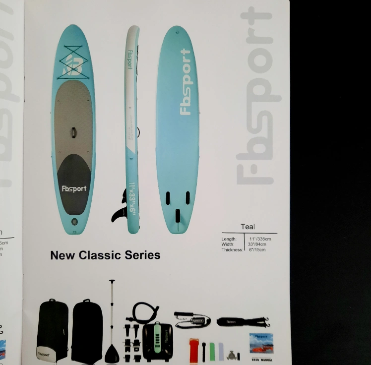 I won this inflatable paddle board and, cannot use it myself It's never been used but when I picked it up, the board had been put back into the box because it had been on display. The light blue, teal colour is nice and, from checking Fbsport boards online it seems to be a fairly good quality board. - Length: 11' / 335cm - Width: 33" / 84cm - Thickness: 6" / 15cm - PICK UP ONLY - you'll need 2 people to carry the box or, a dolly if you're picking it up on your own