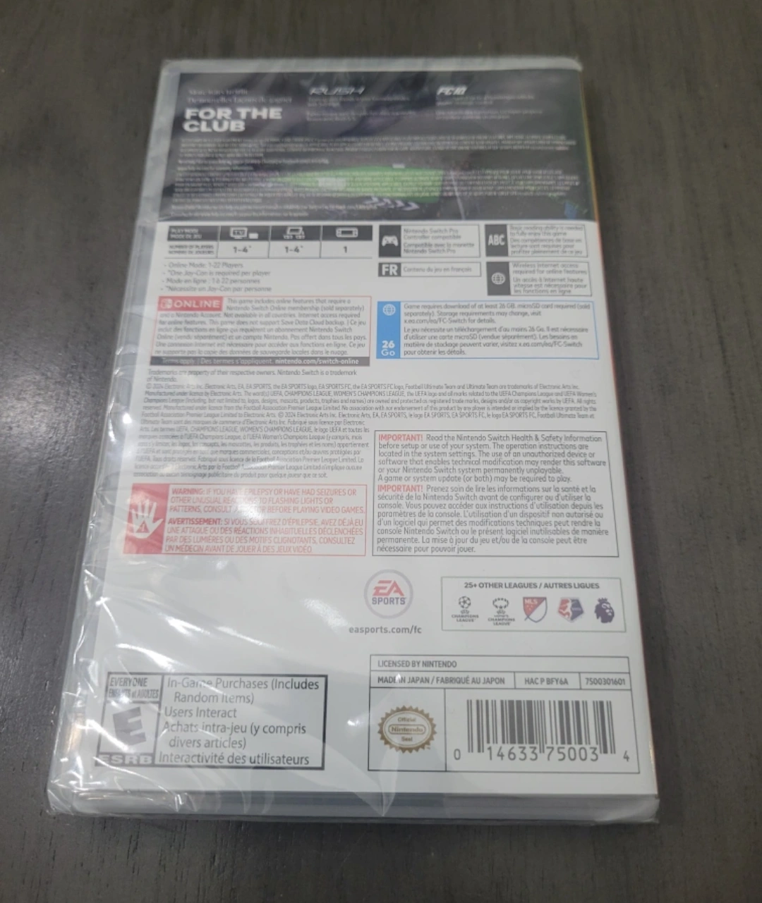 New, sealed copy of FC25 for Nintendo Switch. Download and microSD card required. Includes in-game purchases. EASports