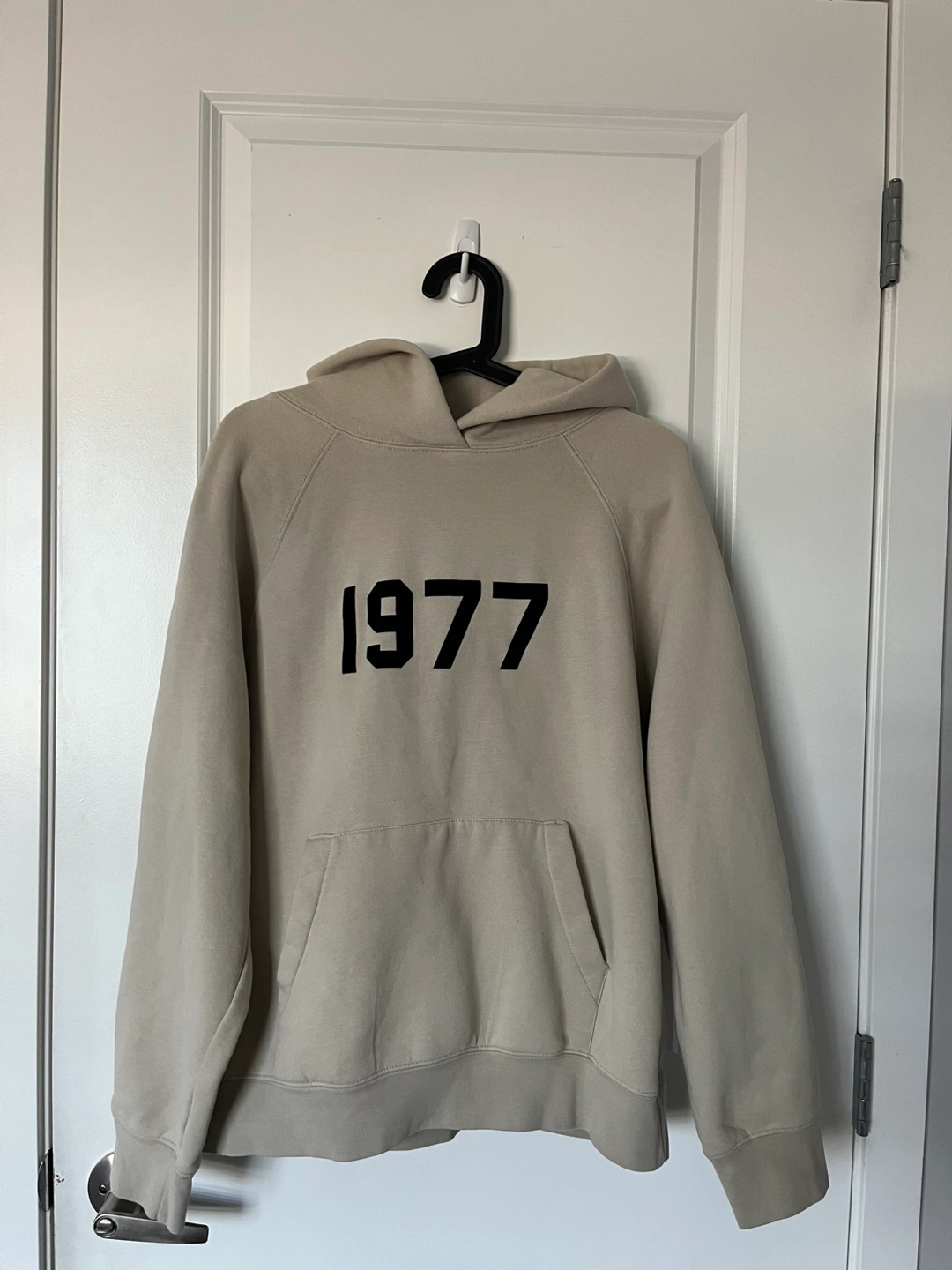 Selling a Fear of God Essentials 1977 hoodie in a lovely beige colour. It's in great condition and ready for a new home. Perfect for staying cozy and stylish!