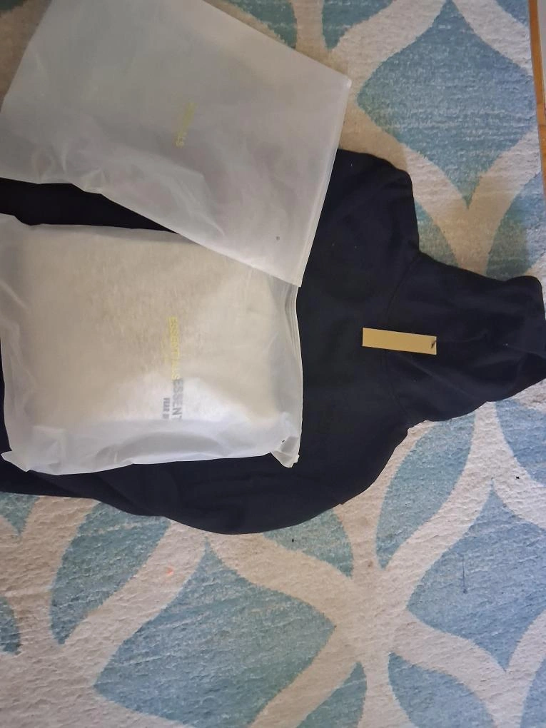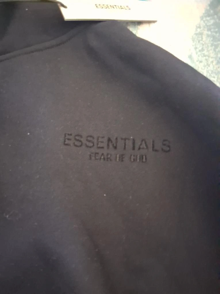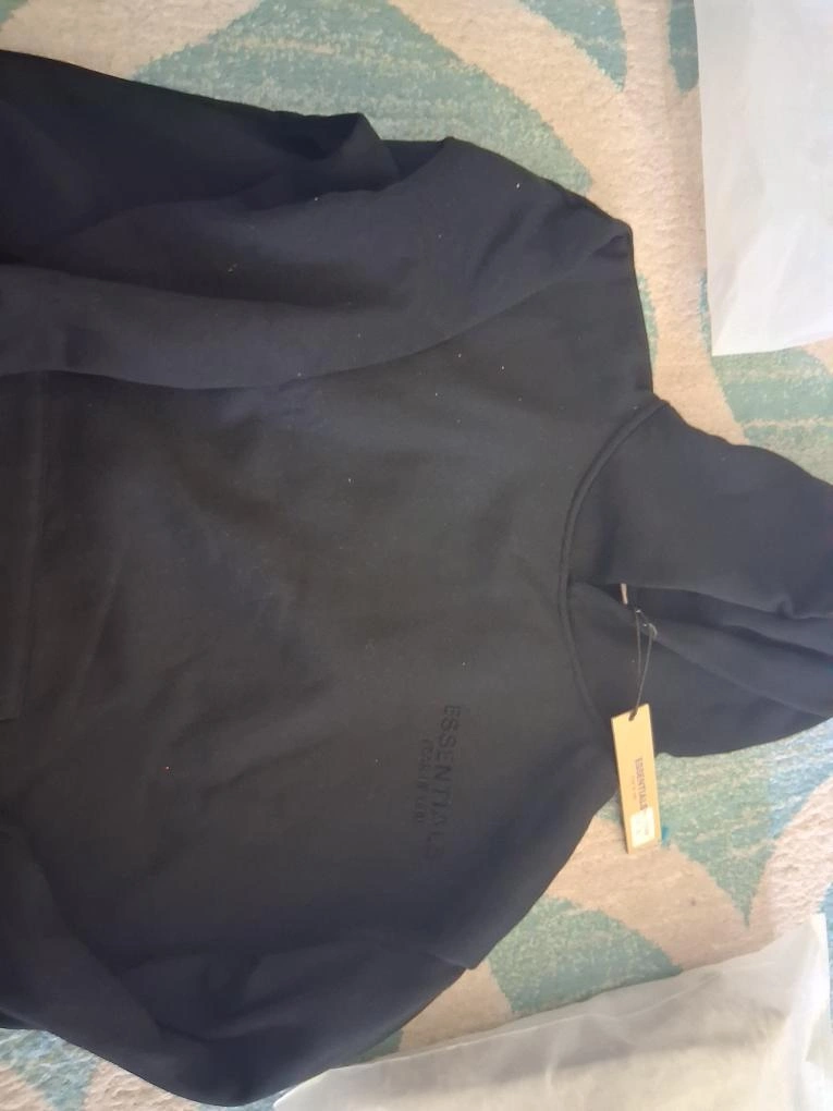 Fear of God Essentials black hoodie. Size is not specified. New with tags. Comes with original packaging.50 each