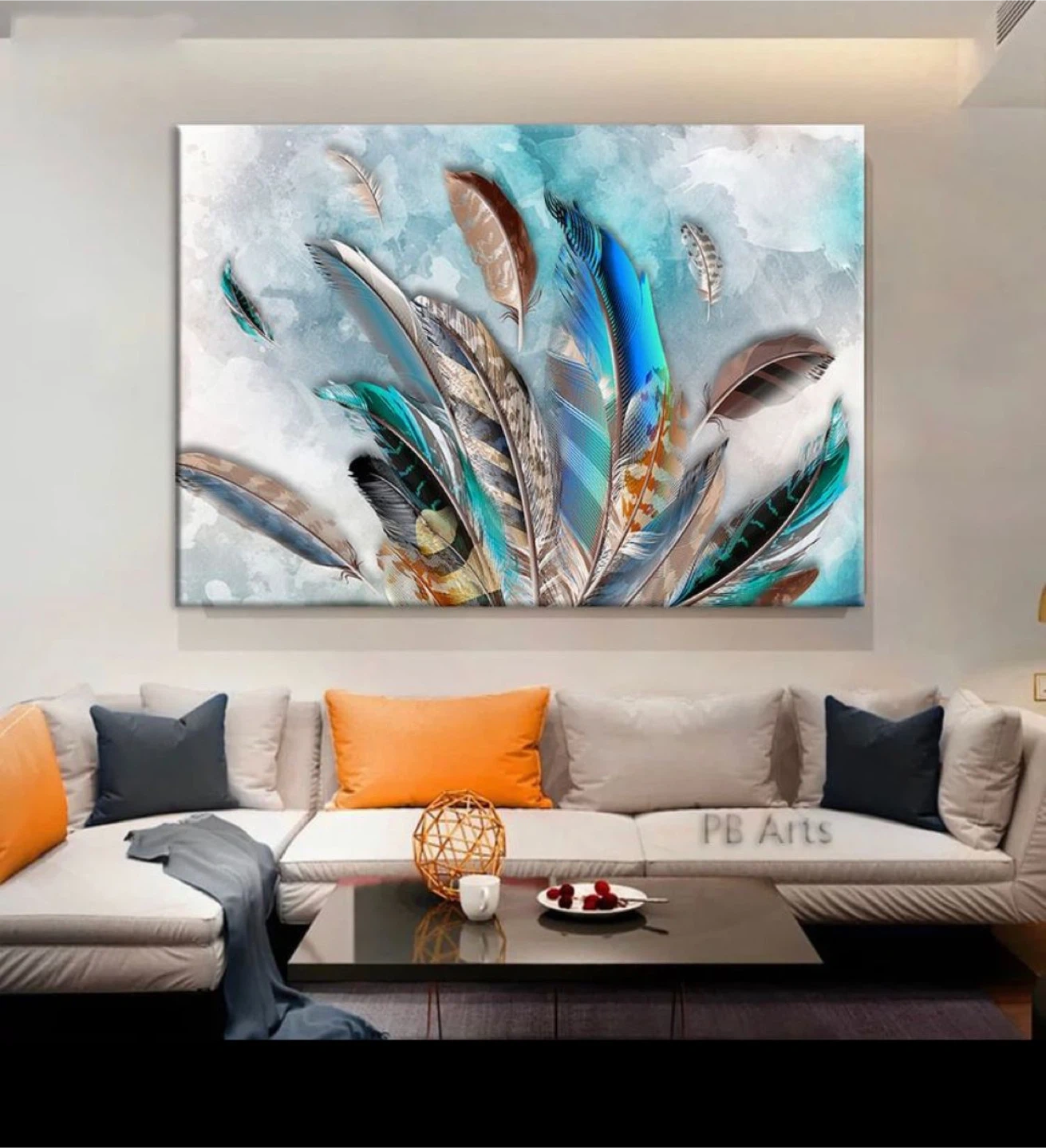 Canvas wall art featuring a beautiful feather design! It would look great in any living room or bedroom Size 50x32 inches Pickup and delivery