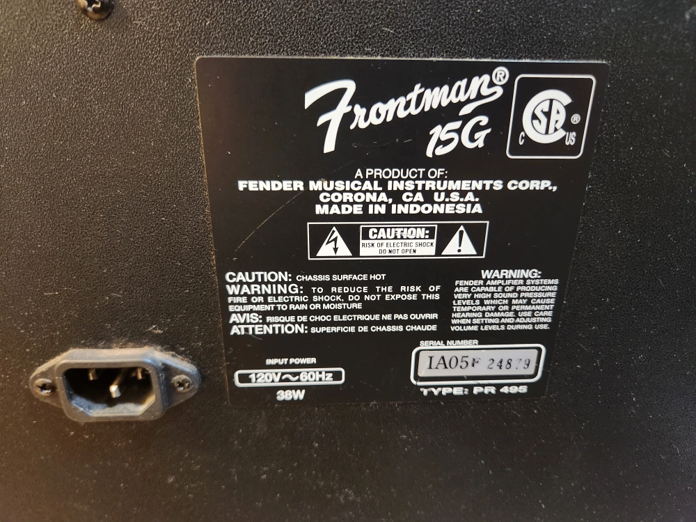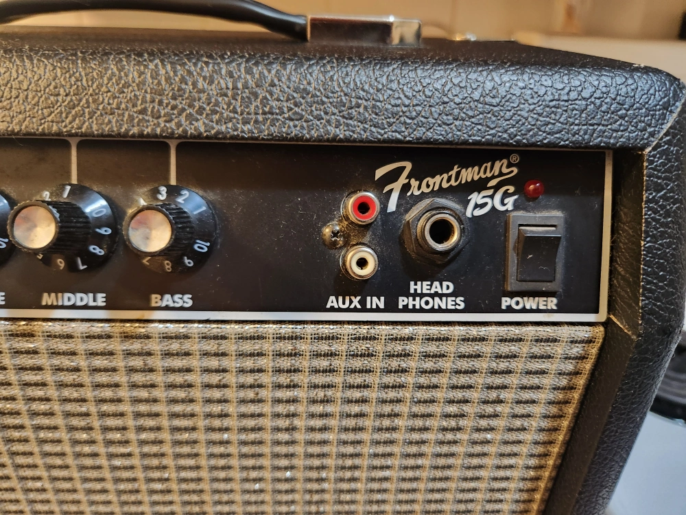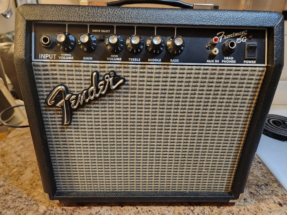 Selling a Fender Frontman 15G guitar amplifier. It's in good condition and ready to use! Features include volume, gain, drive, treble, middle, and bass controls, as well as aux in and headphone jacks. Price Firm. Pick-up Only. Cash Only