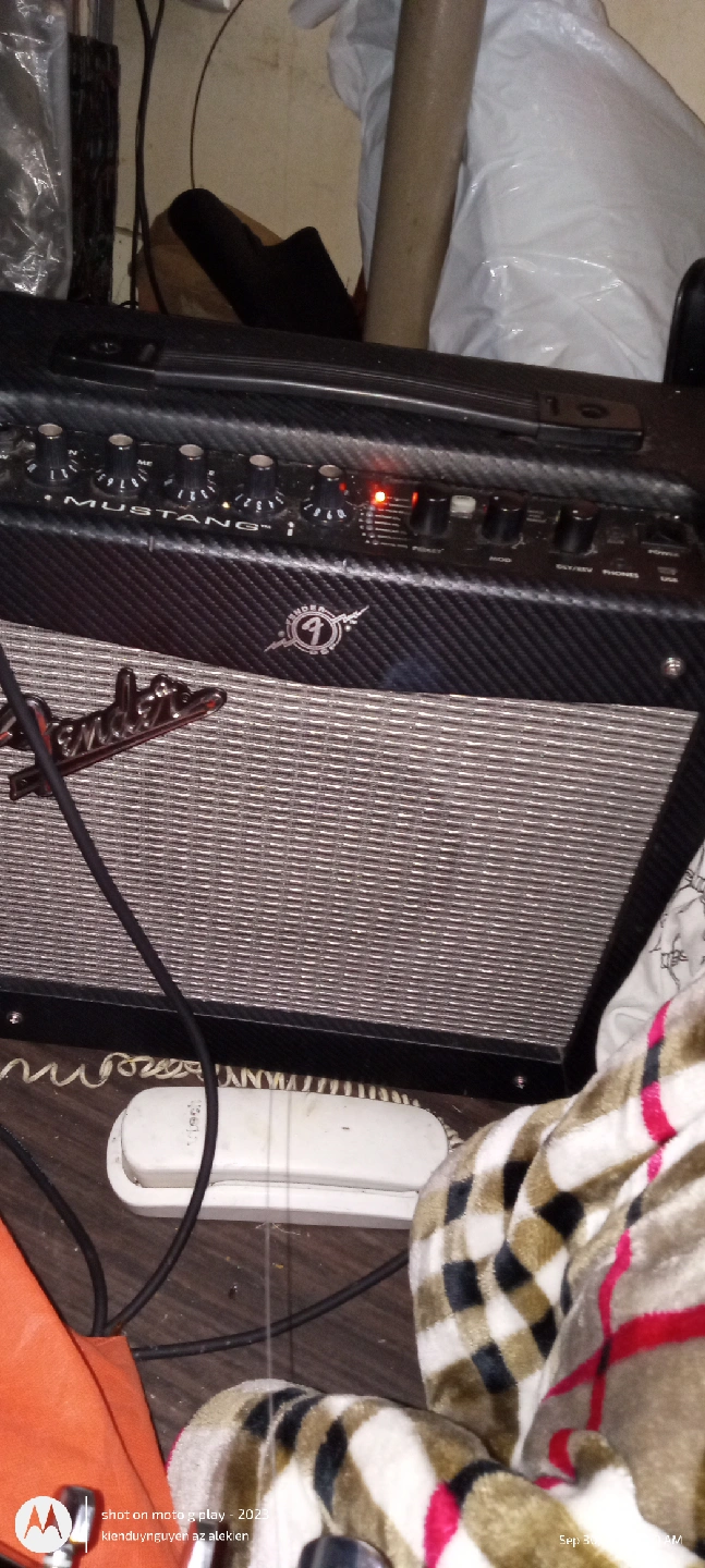 Selling a Fender Mustang guitar amplifier. It's in good condition and ready to rock! Great for practice or small gigs. Let me know if you're interested