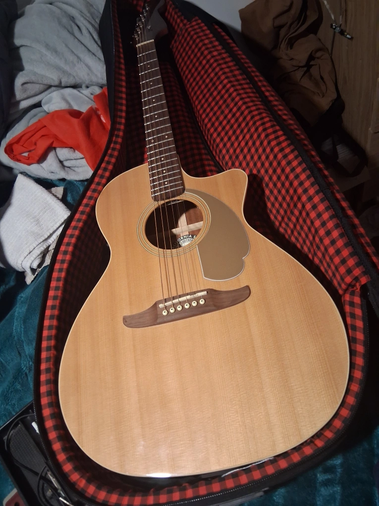 Selling a Fender Newporter Player acoustic guitar in natural finish. It comes with a case for easy transport and storage. The guitar is in good condition and ready to play! On the back, there are 2 scratches, that I barely noticed, but added a photo for better sight.
