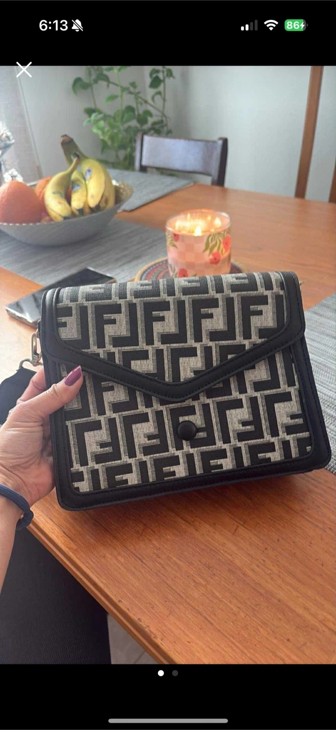 Selling a Fendi crossbody bag. It features the iconic Fendi logo pattern and a black strap. Perfect for everyday use! Cash only pick up