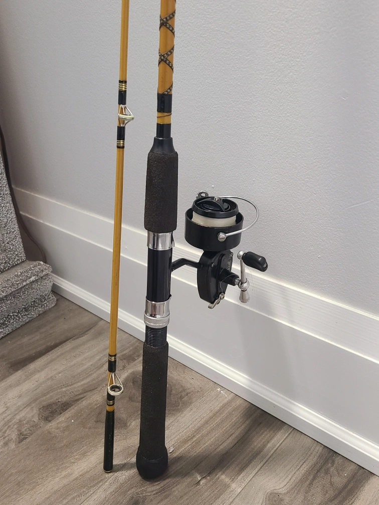 Great preowned condition Fenwick steelhead spinning rod. 8 foot long, 2 piece. Medium heavy 8 to 17 lb test and 1/4 to 5/8 ounce lures. Fast action. Comes with a vintage Garcia Mitchell 301 reel, right hand retrieve.10 lb kono line spooled. Everything works as it supposed to. Pickup Mississauga.
