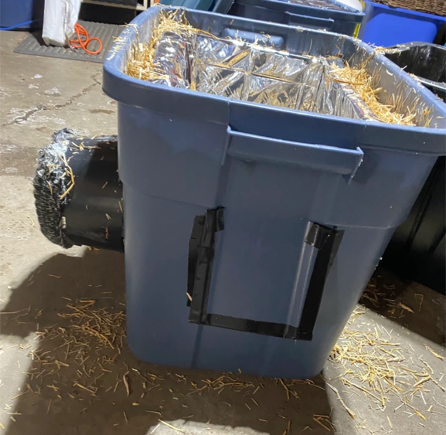 I built this last year out of two Rubbermaid containers. The Rubbermaid containers are connected through a insulated tube. The containers themselves have been insulated with a mylar blanket, Styrofoam and clean straw. Pick up Delton area 123 ave 95 st Please do not contact me unless you are interested in picking it up that day.