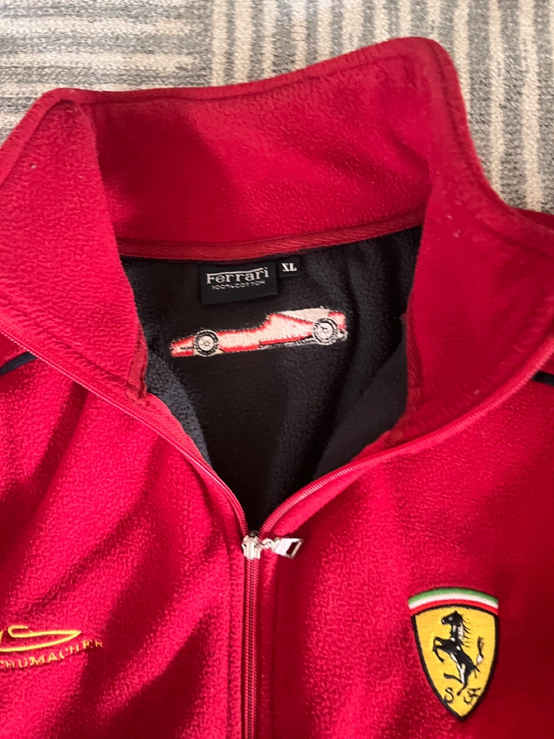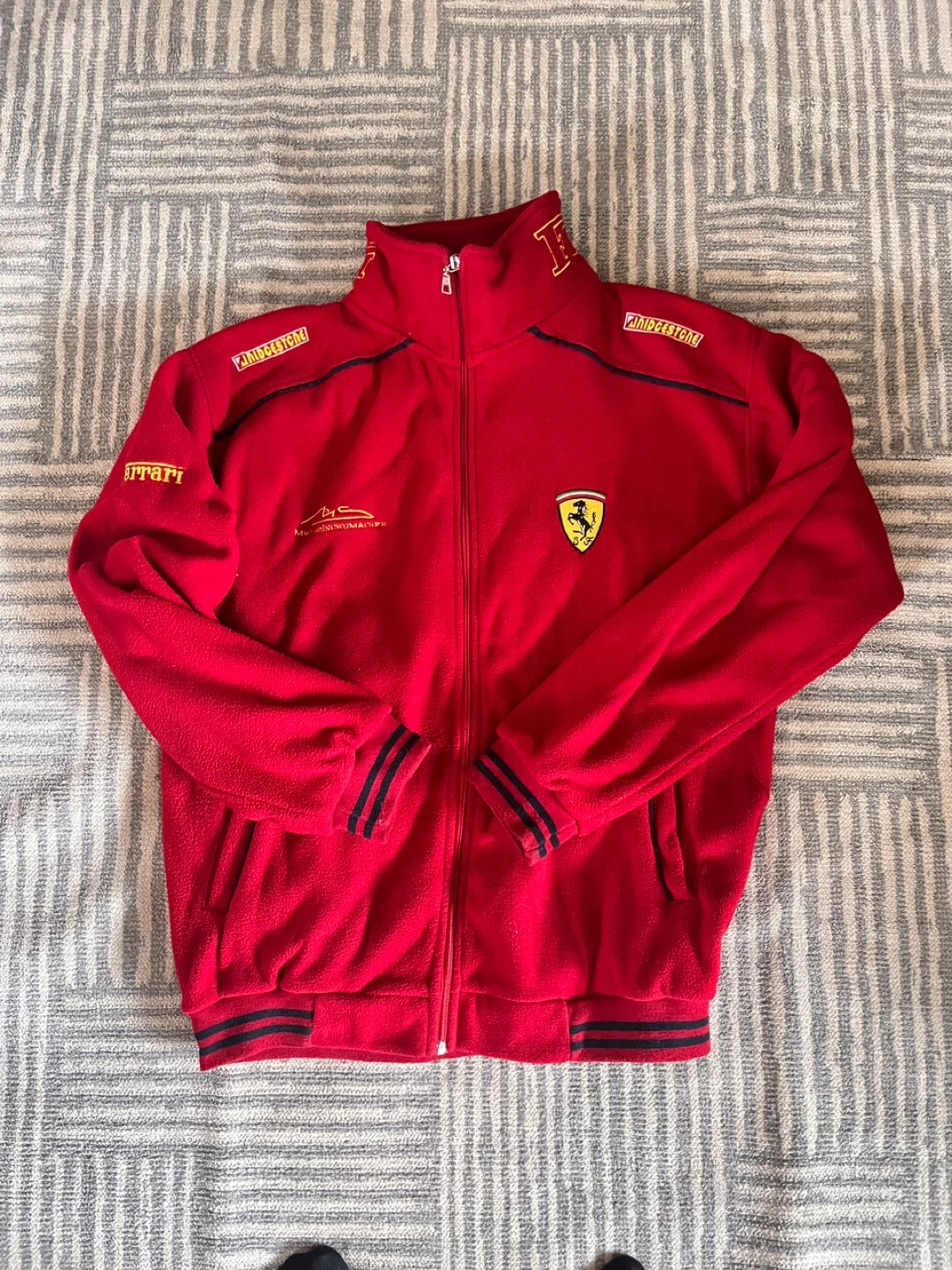 Selling a gently used Ferrari fleece jacket in size XL. It's a vibrant red colour and features the Ferrari logo. Great for any racing fan!