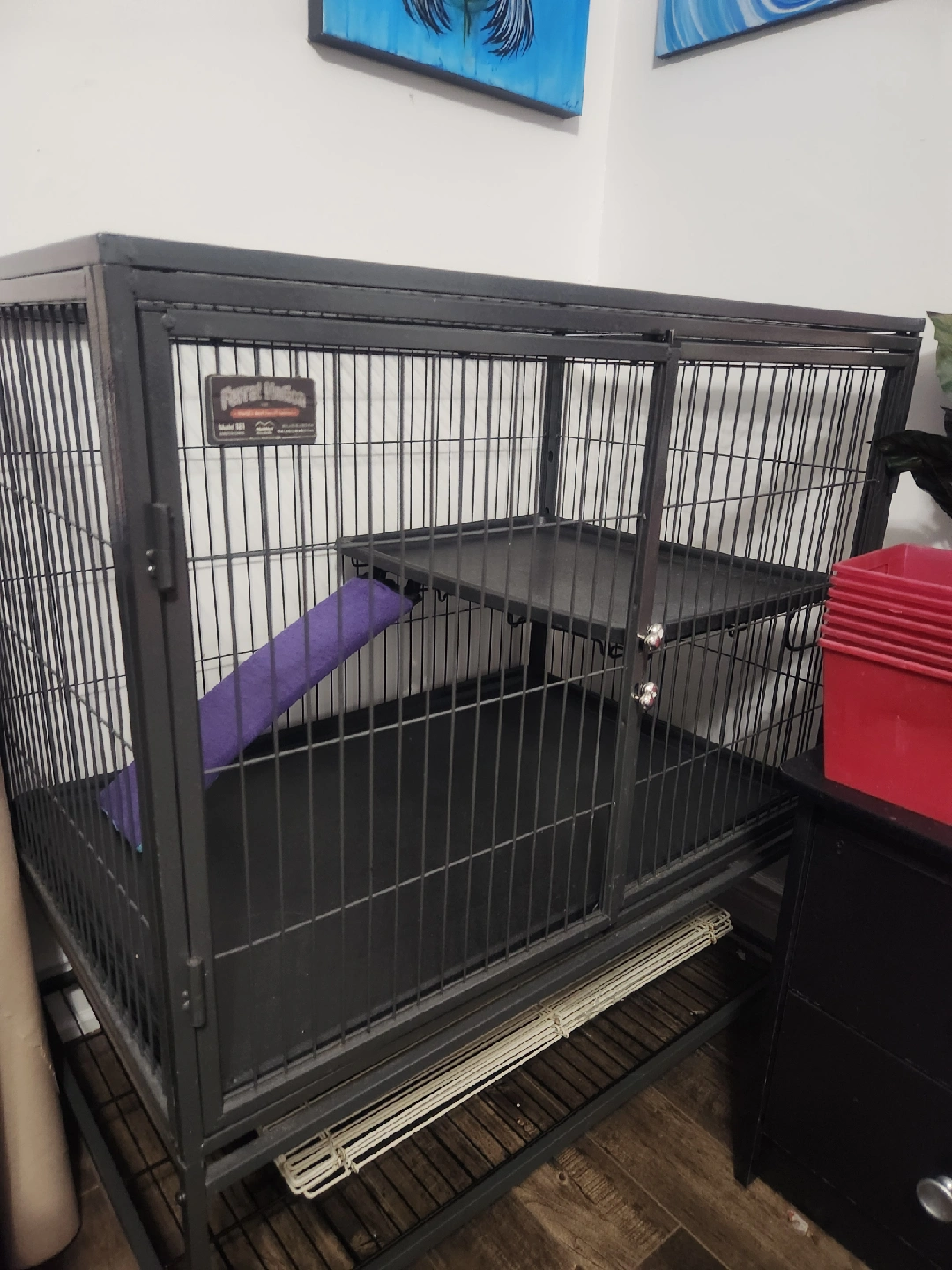 Selling a Ferret Nation cage, model 181. It's in great shape and ready for a new ferret home! The dimensions are 36 L x 25 W x 38.5 H inches, or 91.4 L x 63.5 W x 97.8 H cm. This is the World's Best Ferret Habitat! cloth ramp cover, litter pan and scoop provided